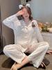 Женский пижамный комплект из шелковой смеси - С длинным рукавом, Легкий, Стиль Весна/Осень 2023 — купить товар онлайн с бесплатной доставкой по всему миру!