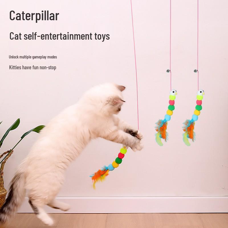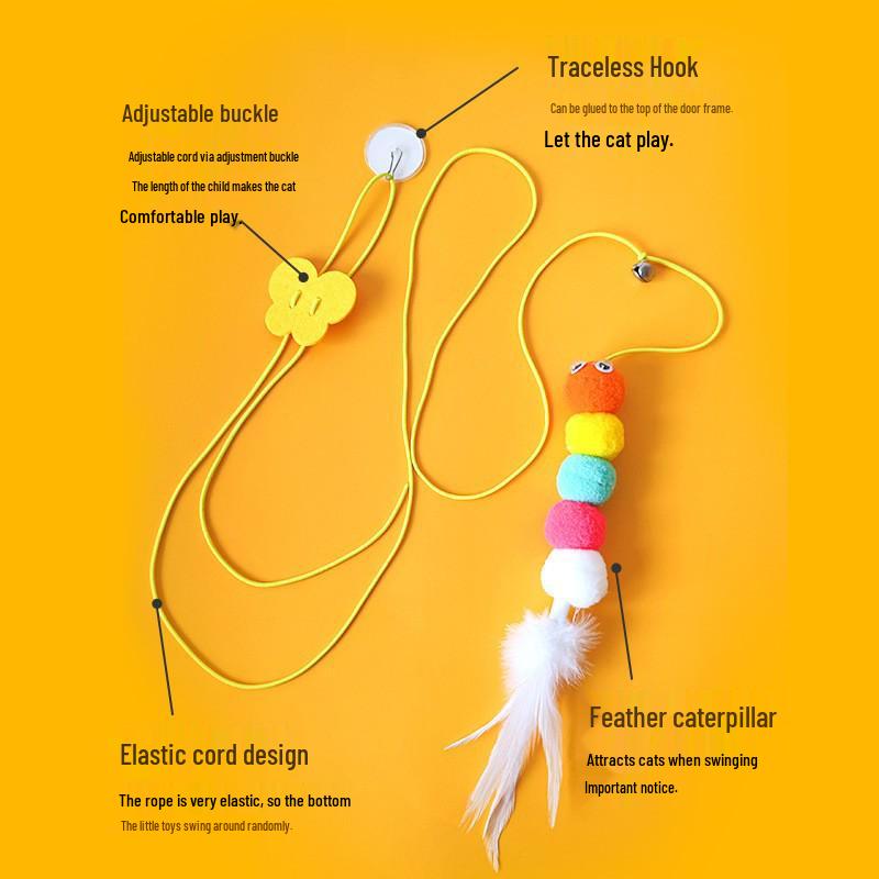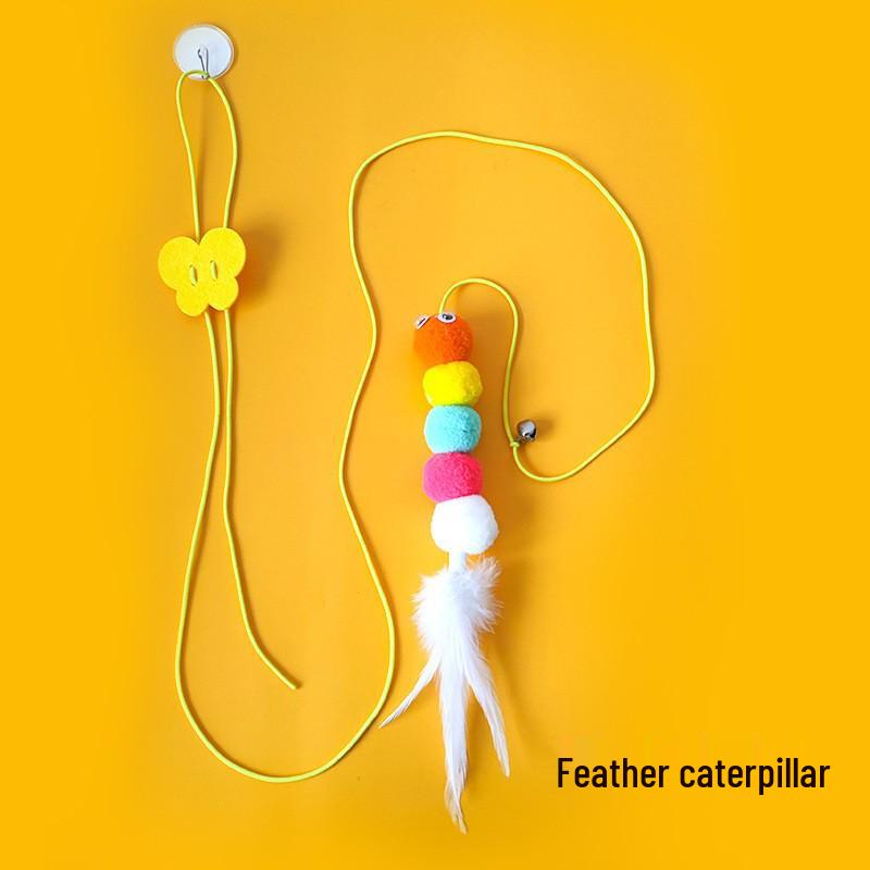 Эластичная палочка-дразнилка для кошек с перьями и колокольчиком и подвесной игрушкой-мышкой для избавления от скуки