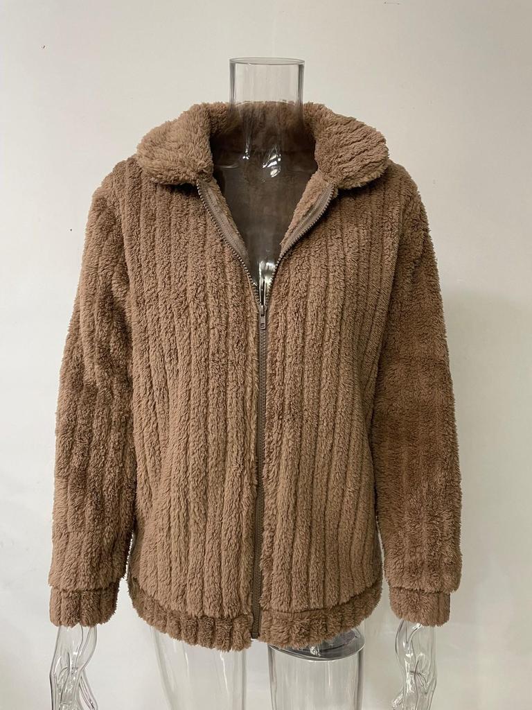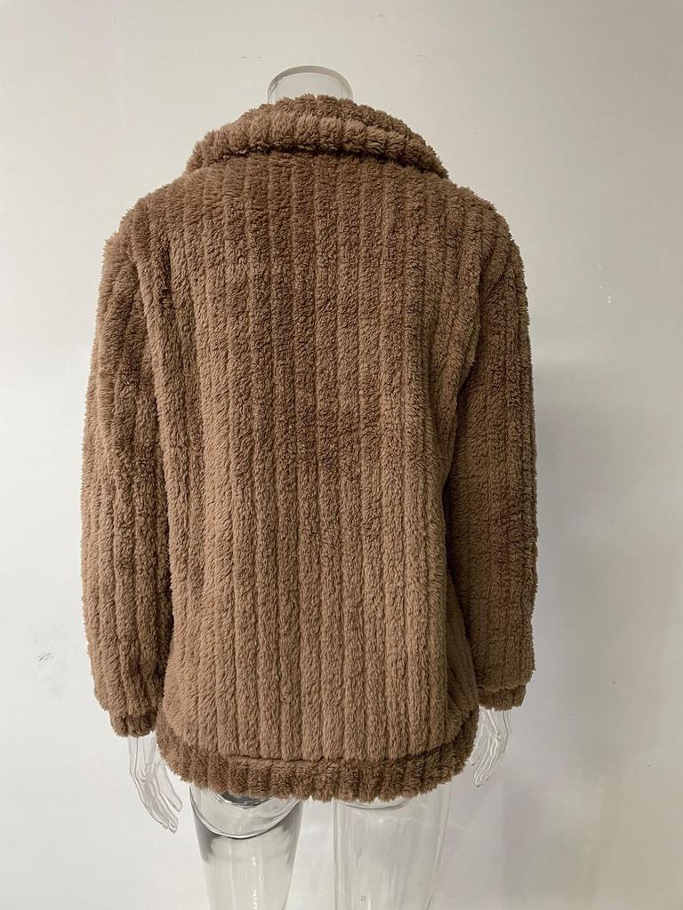 Этот стильный женский кардиган идеально подходит для осенне-зимнего сезона. Изготовлено из высококачественного полиэстера, имеет среднюю толщину, чтобы согревать вас и обеспечивать комфорт.. Однотонный узор обеспечивает универсальный вид, который можно без труда сочетать с различными нарядами.. Этот кардиган из рубчатого пушистого флиса, выполненный с изысканным воротником пиджачного типа и длинными рукавами, сочетает в себе элегантность и уют.. Идеально для различных случаев, это незаменимое дополнение к вашему гардеробу в этом сезоне.