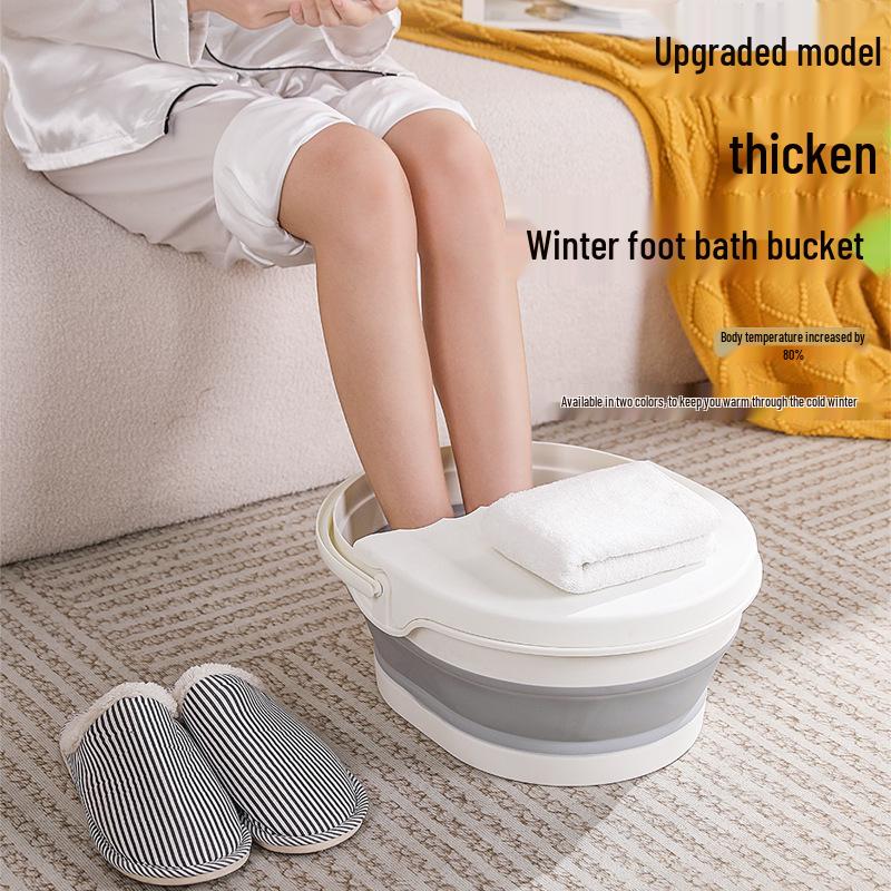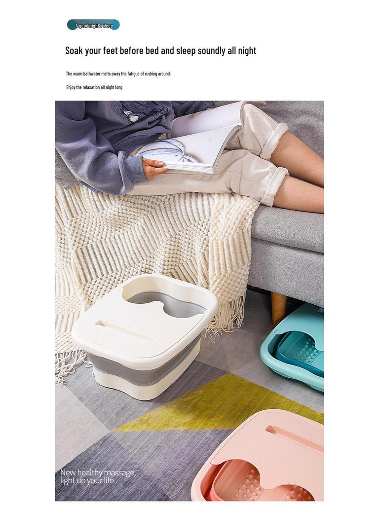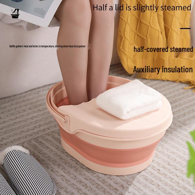 Складная силиконовая ванночка для ног с крышкой - Портативная, компактная, утолщенный таз для замачивания и массажа