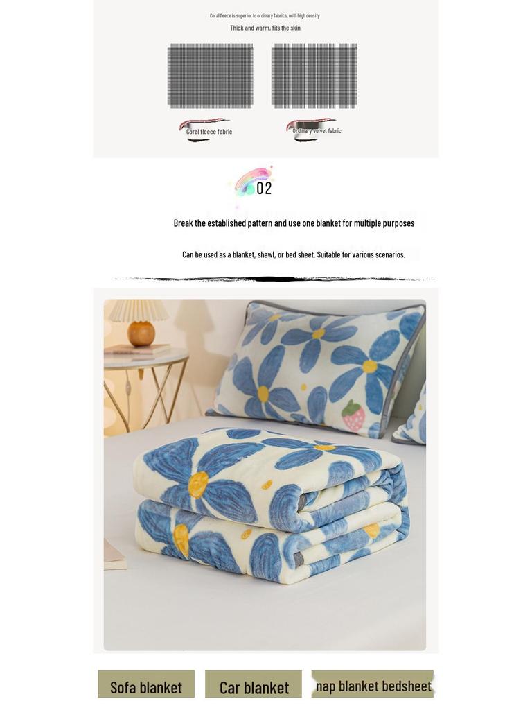 Молочный бархат Коралловый флис Фланелевое одеяло: Плотный, уютный чехол для дивана или одеяло для сна в офисе. Идеальный подарок.
