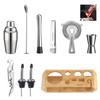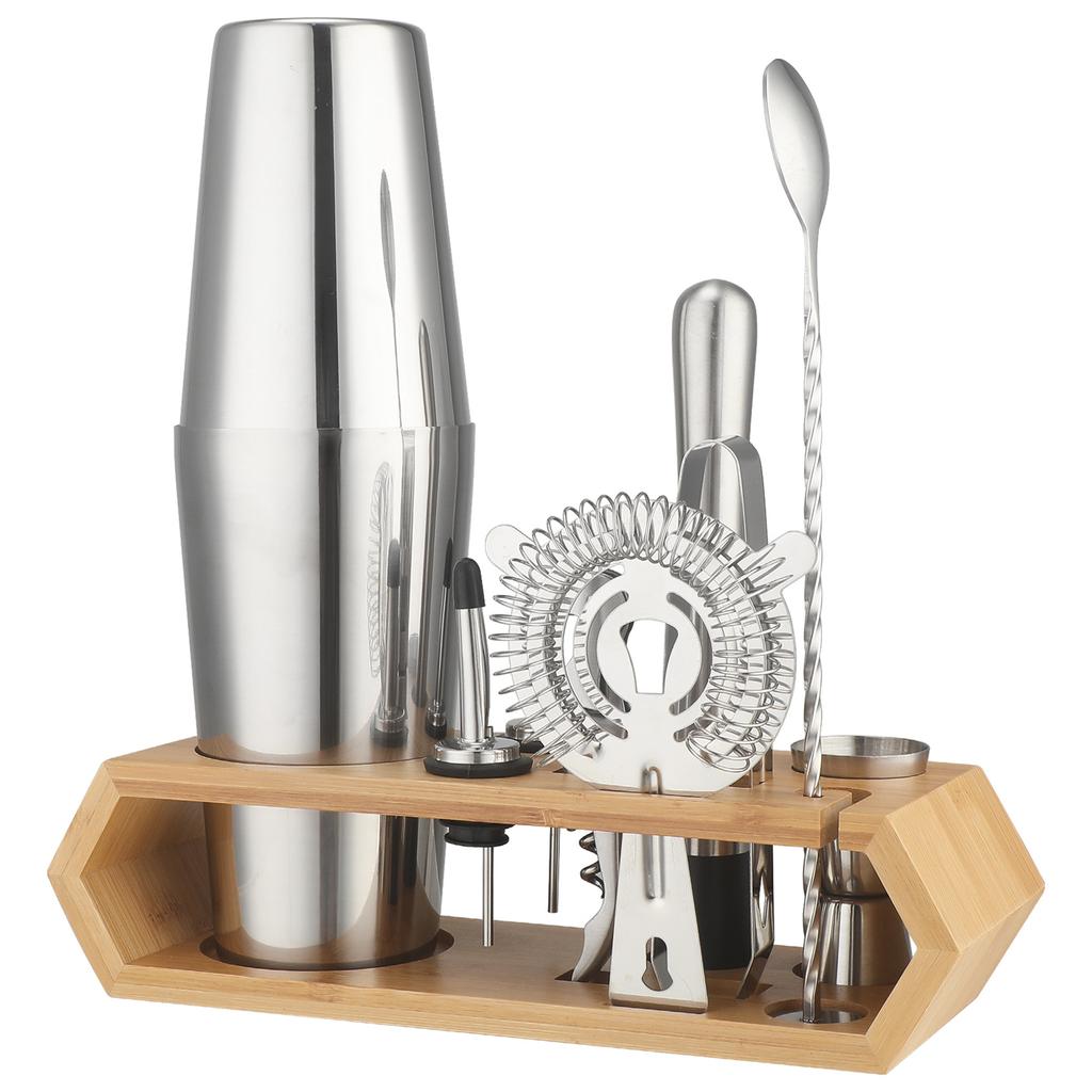 Stainless Steel Rhombus Bamboo Frame Shaker Set Bar Shaker Set 10-Piece Cocktail Shaker Set
