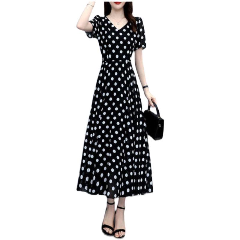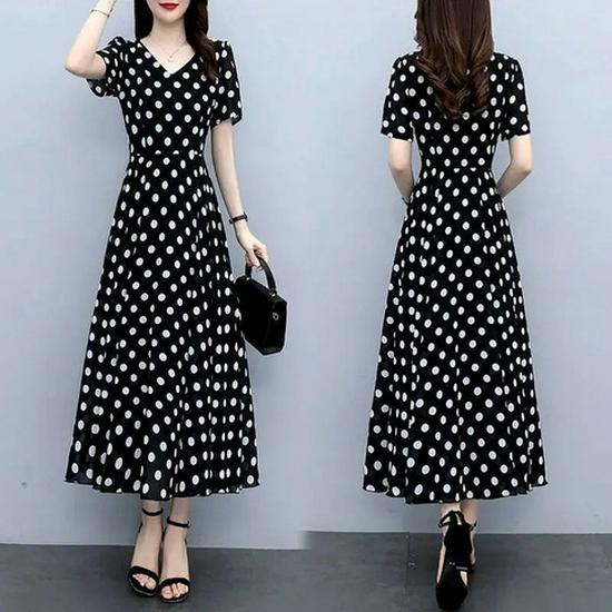 Летнее платье выше колена в горошек 2025: Новая Мода Утягивающая Талия Миди