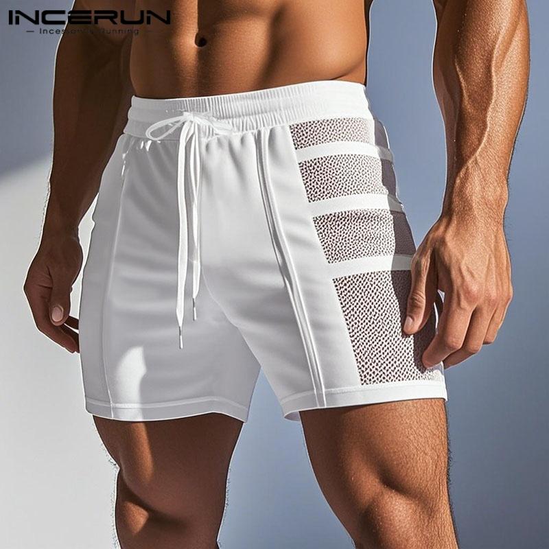 INCERUN Мужские шорты с эластичной талией на кулиске, с сетчатыми вставками по бокам, пэчворк, пижама