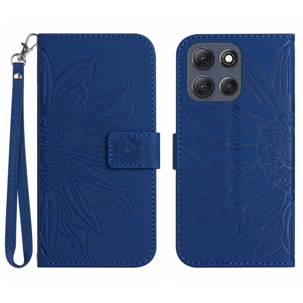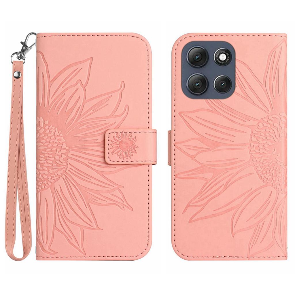 Для Motorola Moto G56 5G Чехол Кожаный кошелек с тиснением подсолнуха Чехол для телефона с ремешком на запястье