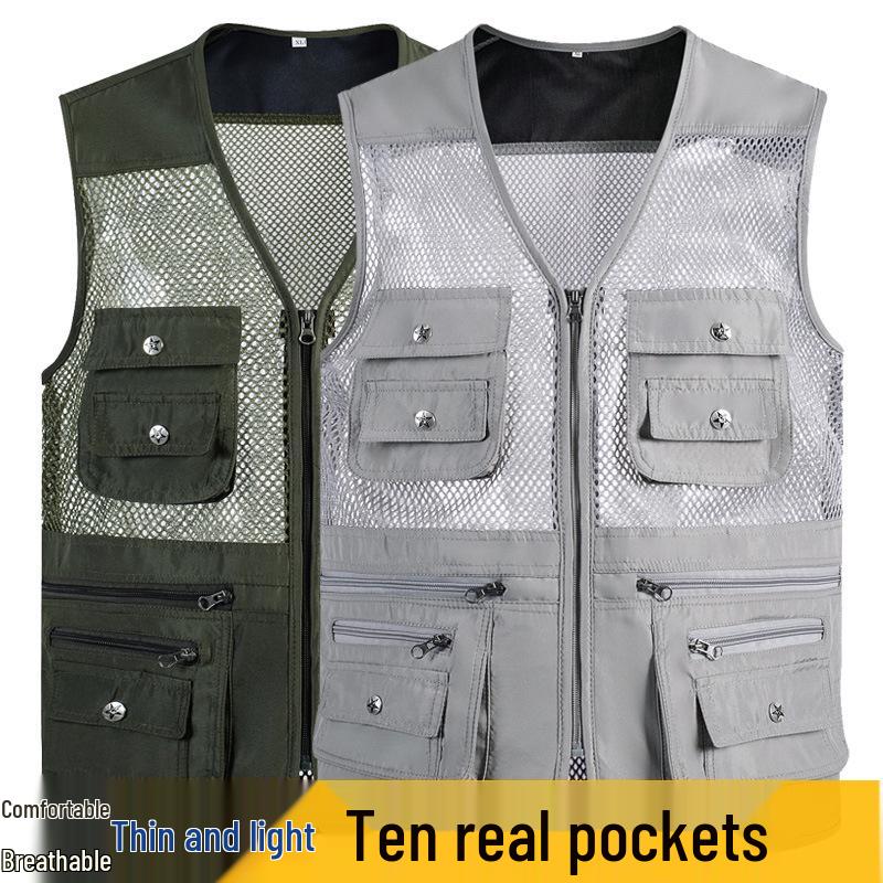 Этот мужской спортивный жилет — идеальный компаньон для летней рыбалки и фотосъемок.. Разработанный со свободным кроем и тонкой верхней одеждой, он обеспечивает комфорт и воздухопроницаемость в теплую погоду.. Жилет имеет практичный V-образный вырез и удобную застежку-молнию, добавляя и стиль, и функциональность.. Благодаря множеству карманов вы можете без труда носить с собой все необходимое.. Изготовленный из прочного полиэстерового материала и украшенный кружевом из смесового химического волокна, этот жилет создан для выдерживания активного отдыха на открытом воздухе, сохраняя при этом современный и универсальный вид.. Идеально для тех, кто ищет как производительность, так и практичность.