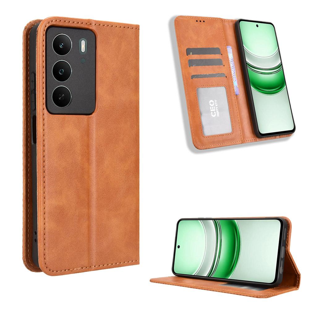 Для Realme C71 4G Кожаный чехол-кошелек с подставкой Ретро текстура Чехол для телефона
