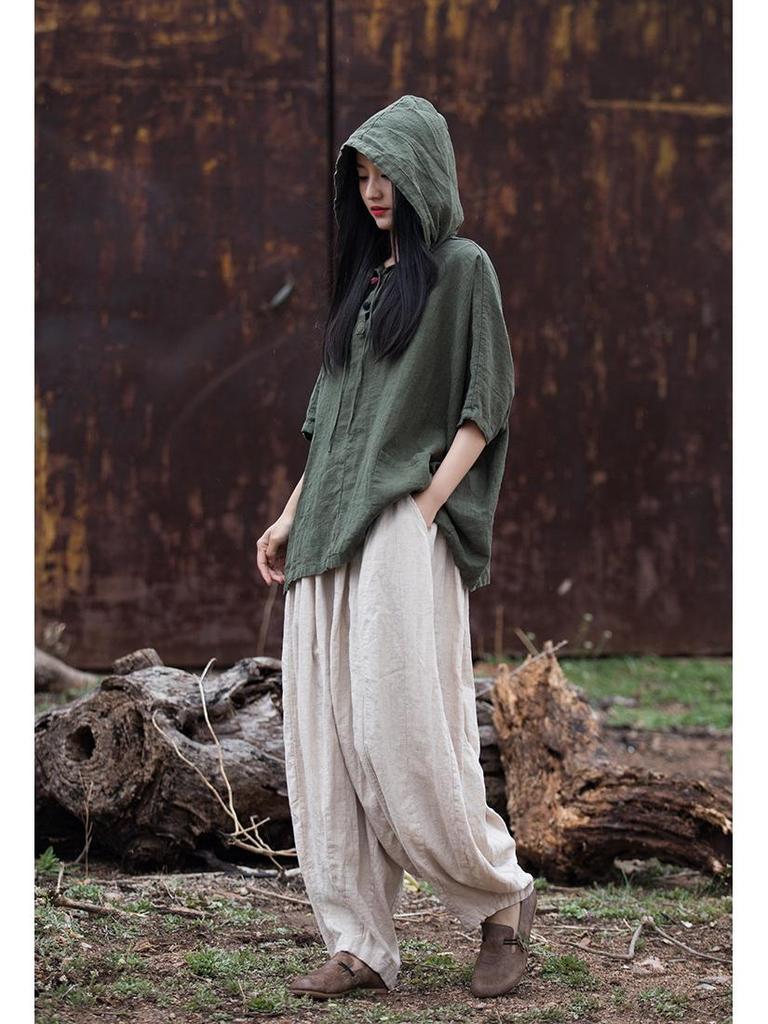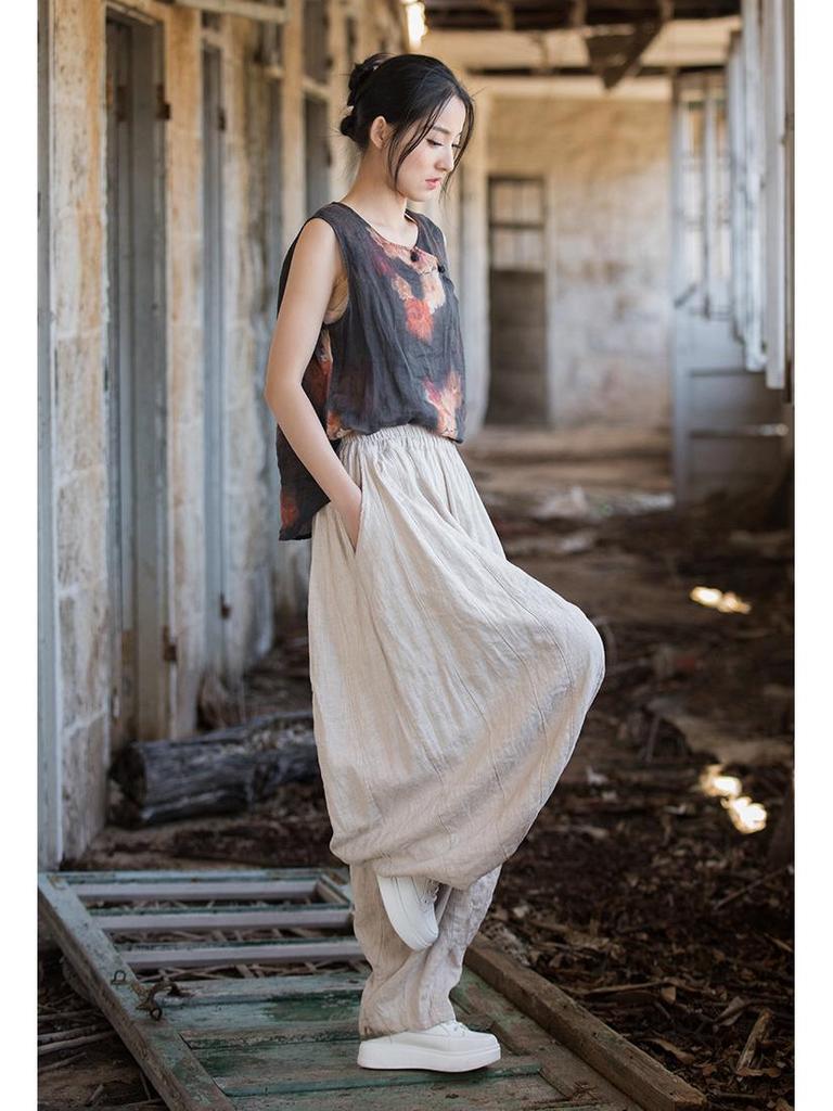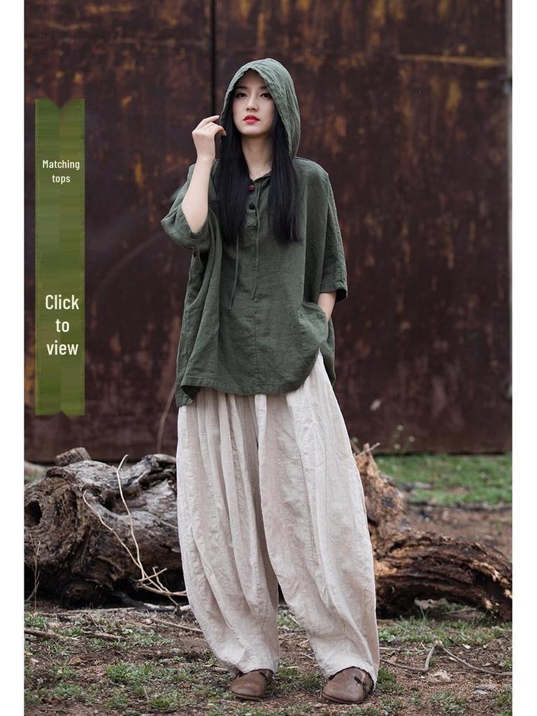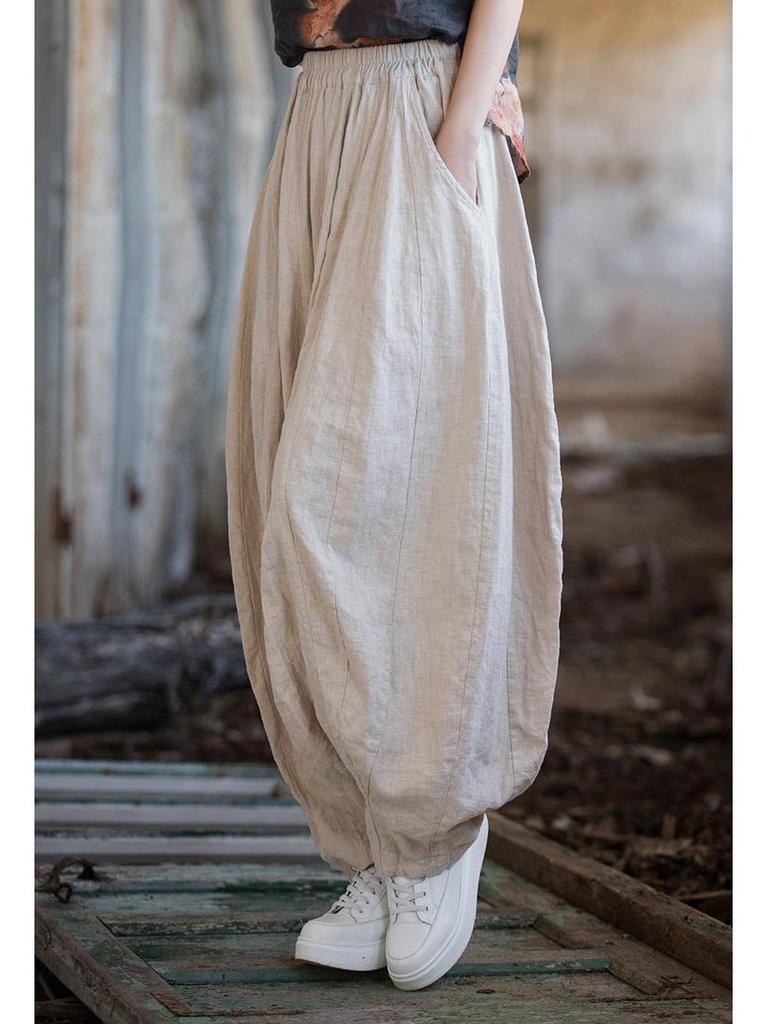 Рами Хлопок Потертый Пэчворк Брюки-фонари - Женские Весенне-летние Тыквенные Длинные Брюки