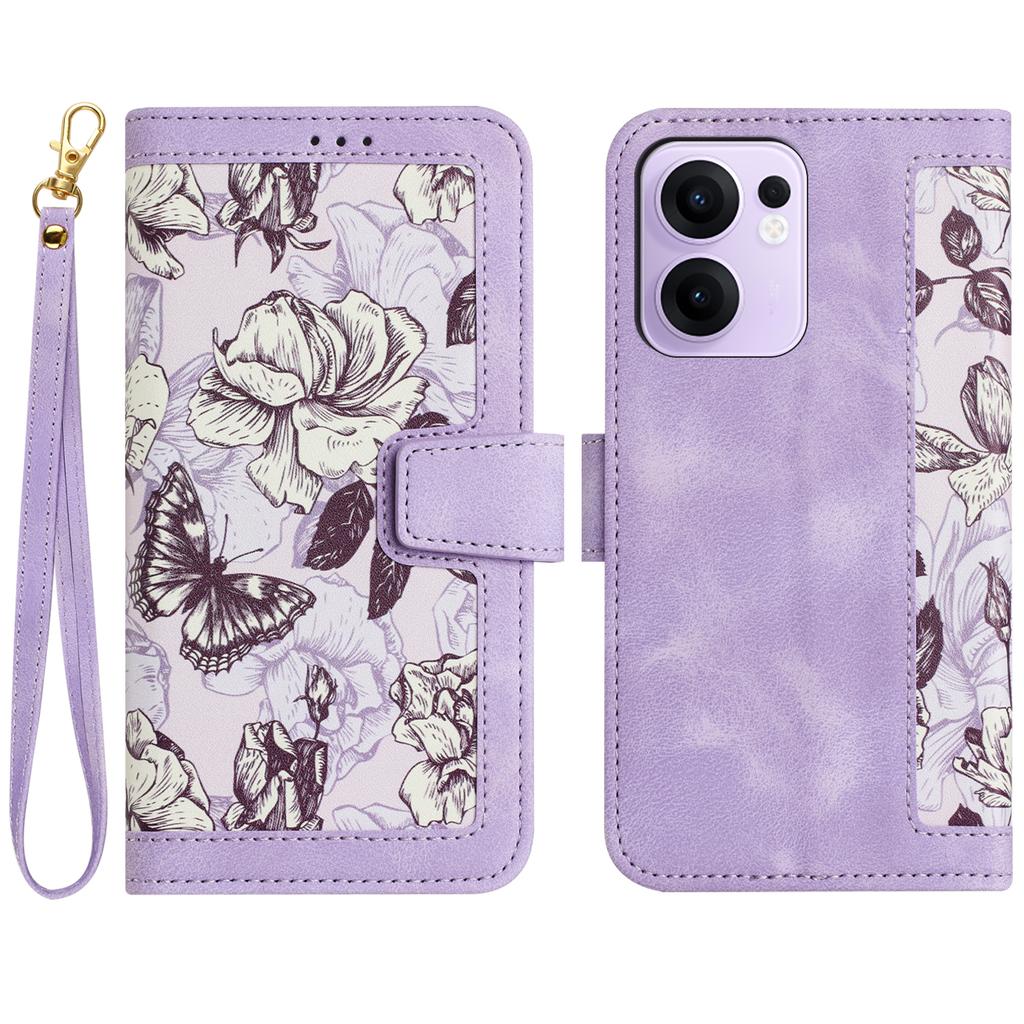 Чехол для Oppo Reno13 F 5G/4G из ПУ кожи с цветочным рисунком, с отделениями для карт/ремешком на запястье