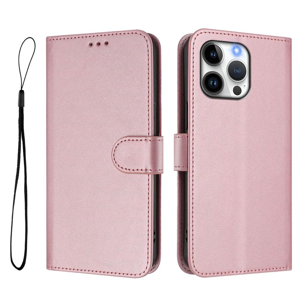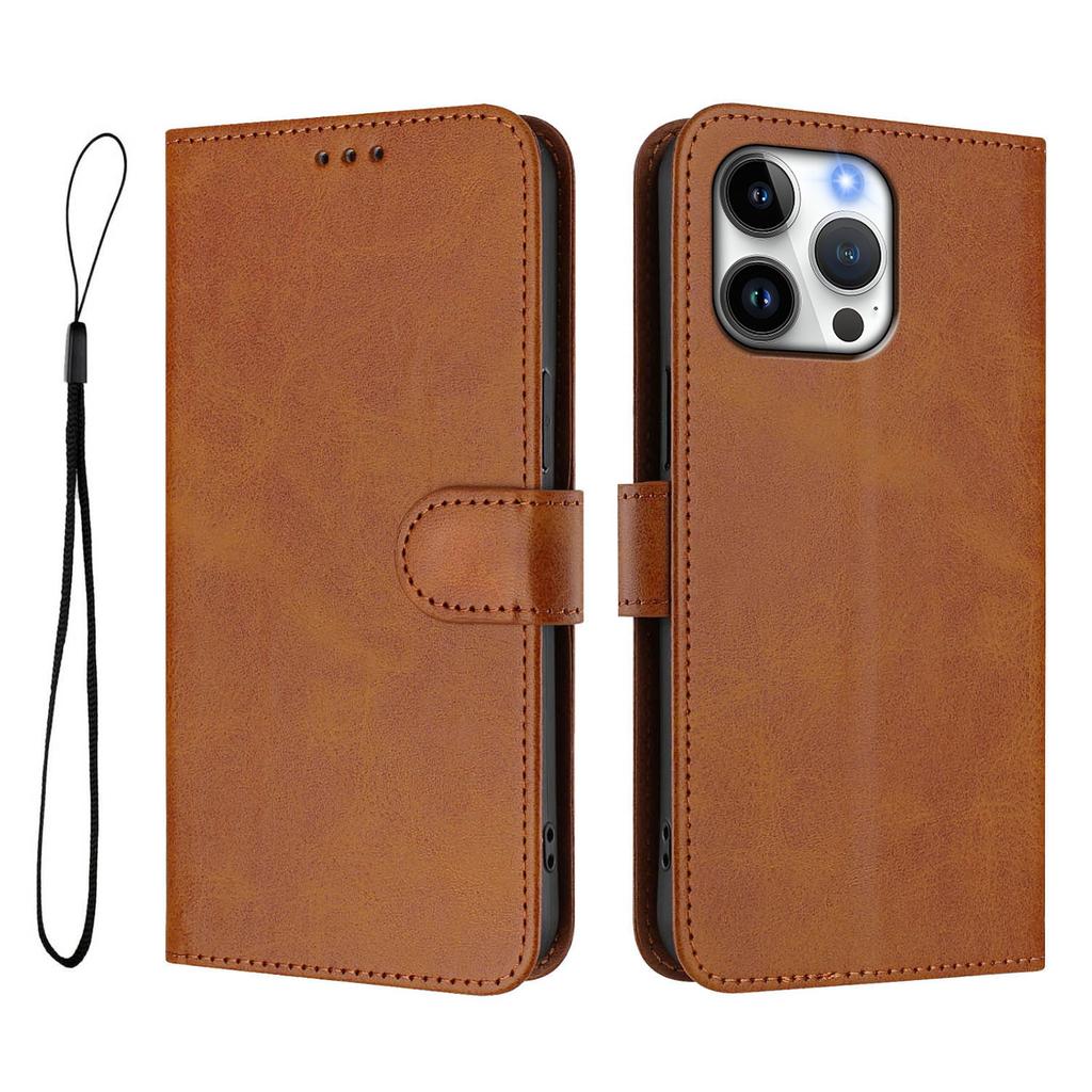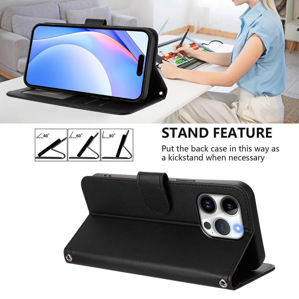 For iPhone 16 Pro Max Wallet Case RFID Blocking Calf Texture Leather Stand Phone Cover with Strap