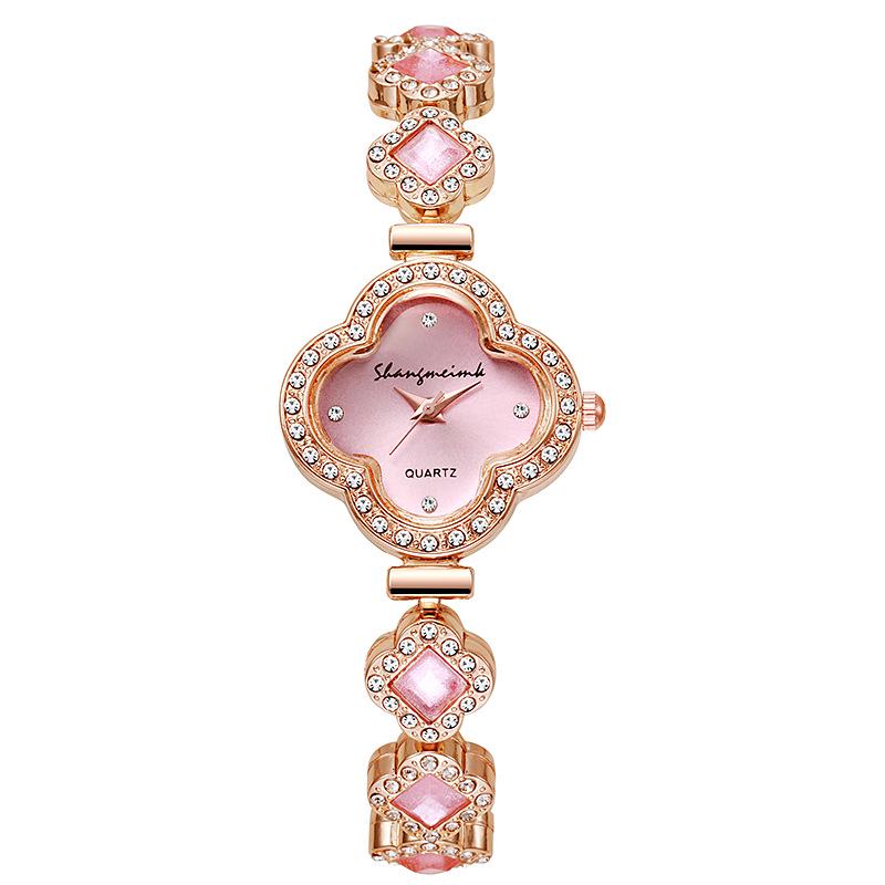 Изумрудные часы-браслет с кварцем и четырехлистным клевером для женщин