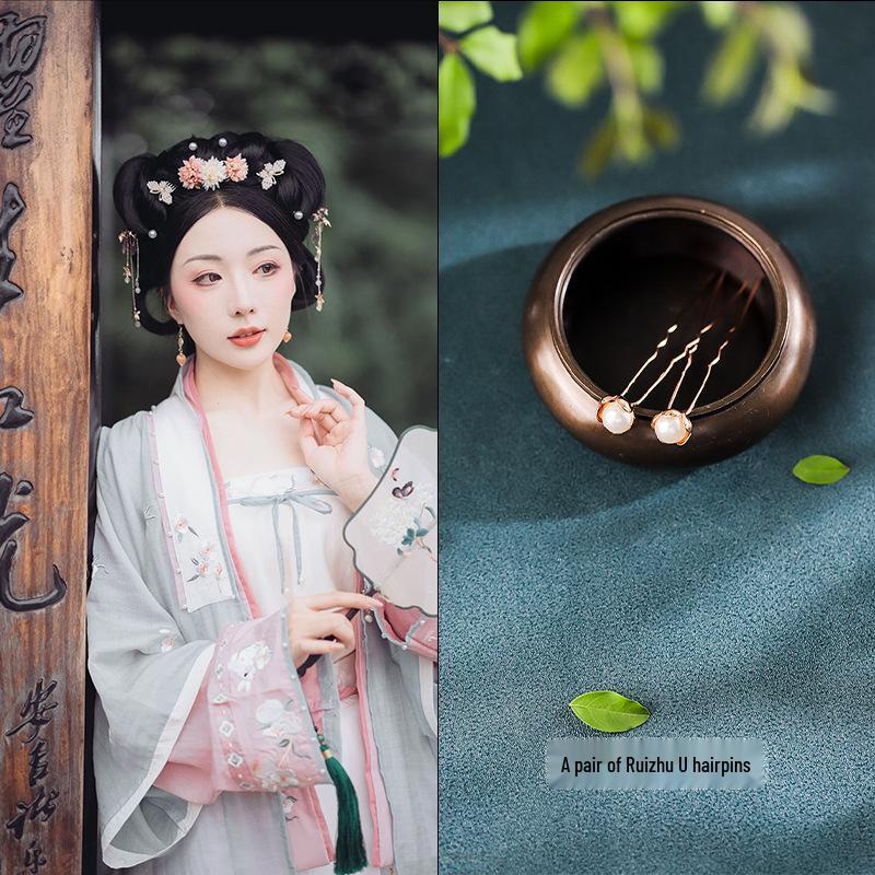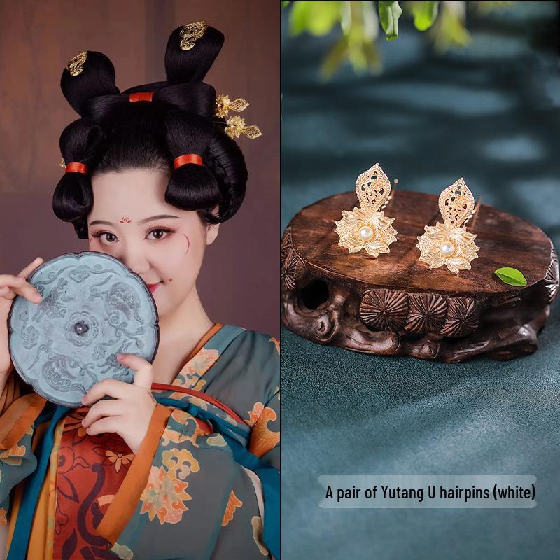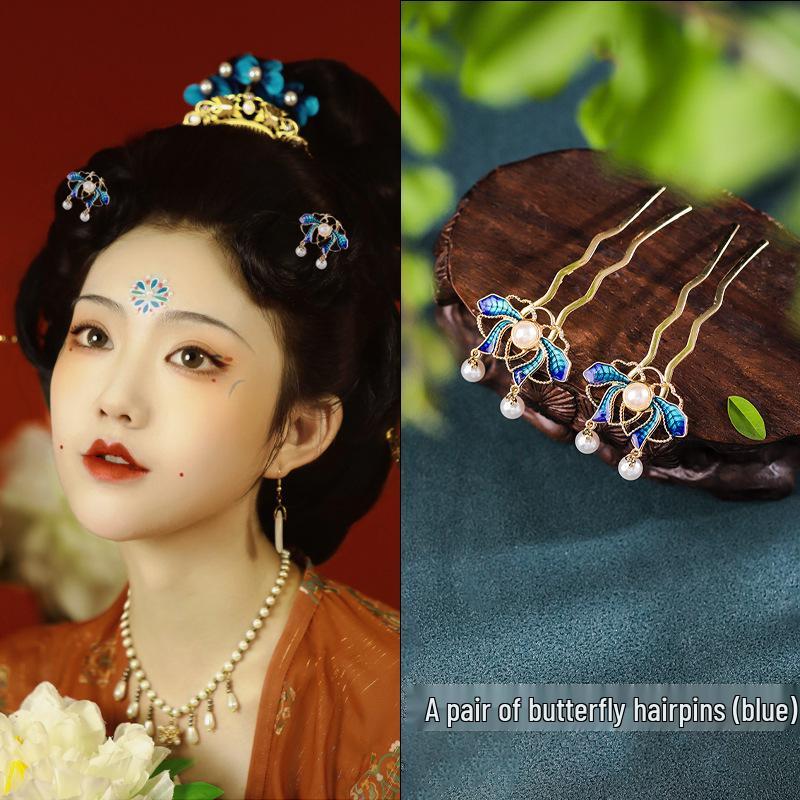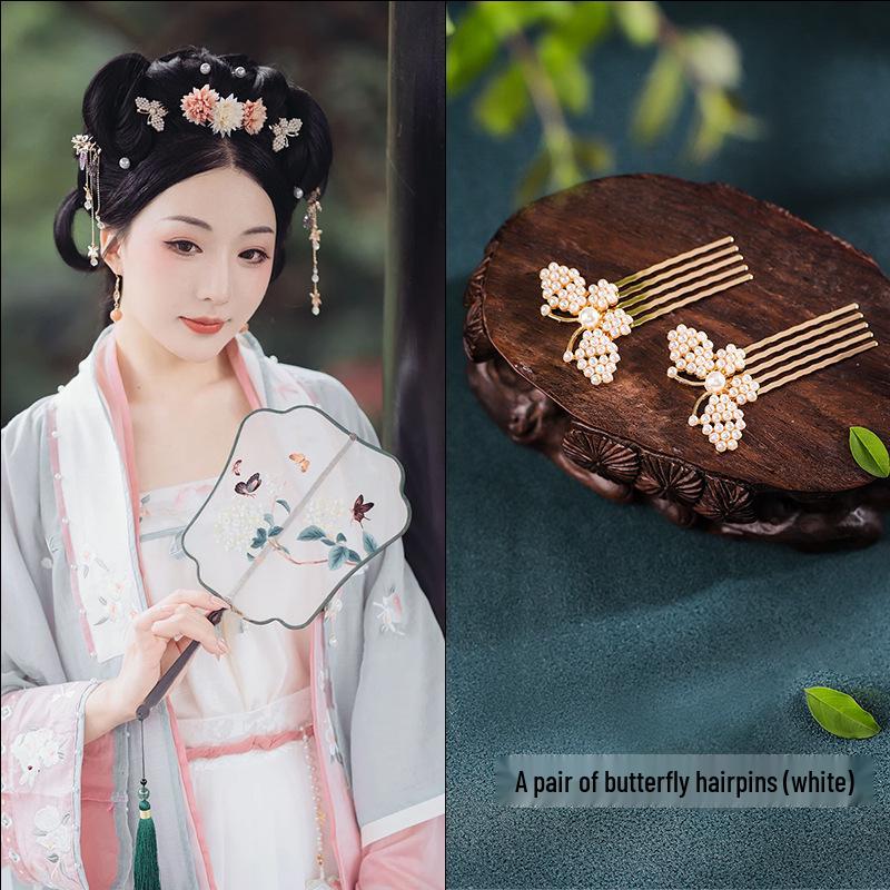 Заколки для волос Ханфу в стиле тан с бабочками и цветами - Простые универсальные U-образные аксессуары для волос.