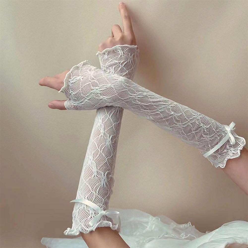 Бантик Завязки Лолита Кружевные Перчатки Черные Белые Рукав Солнцезащитный Косплей Аксессуары