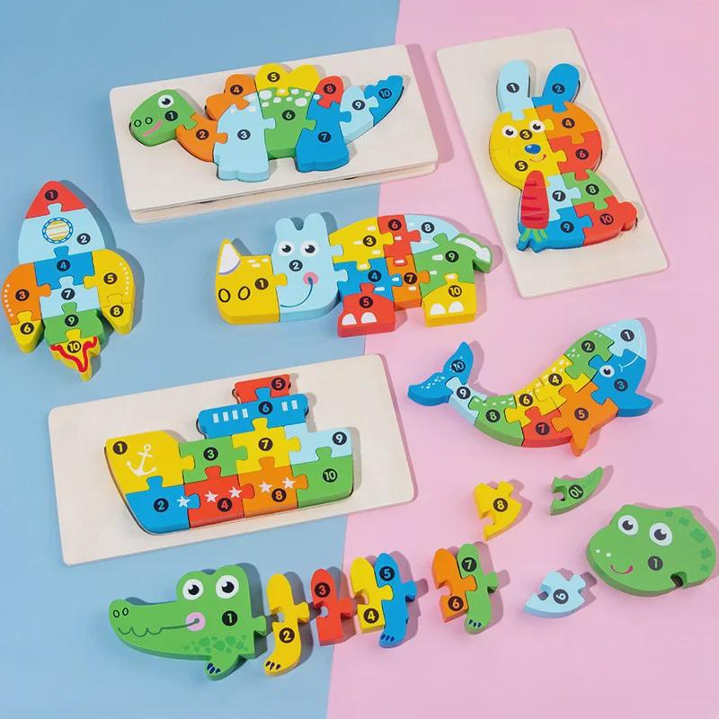 3D Деревянные Пазлы для Малышей с Животными и Транспортом для Раннего Обучения и Когнитивного Развития