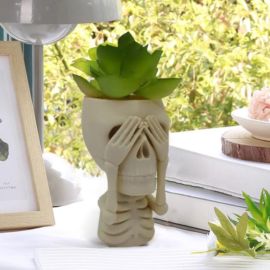 Представляем кашпо в виде черепа, очаровательное дополнение к вашему домашнему декору. Этот 3D дизайн черепа привносит уникальный штрих в любое пространство, вызывая разговоры и выделяясь в качестве фокусной точки.. Будь то в помещении или на открытом воздухе, этот милый и оживленный цветочный горшок принесет радость в ваше окружение.