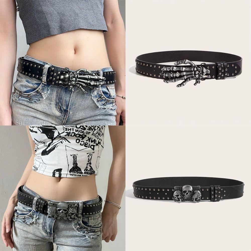 Casual Rivet Belts Versatile Snap on Waist Belt Fashion Skull Belt Unisex