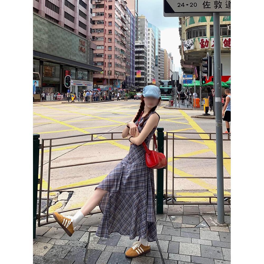 Клетчатое платье-жилет без рукавов, детское летнее новое, в зарубежном стиле, для маленького мужчины, с высоким чувством, нерегулярное длинное платье