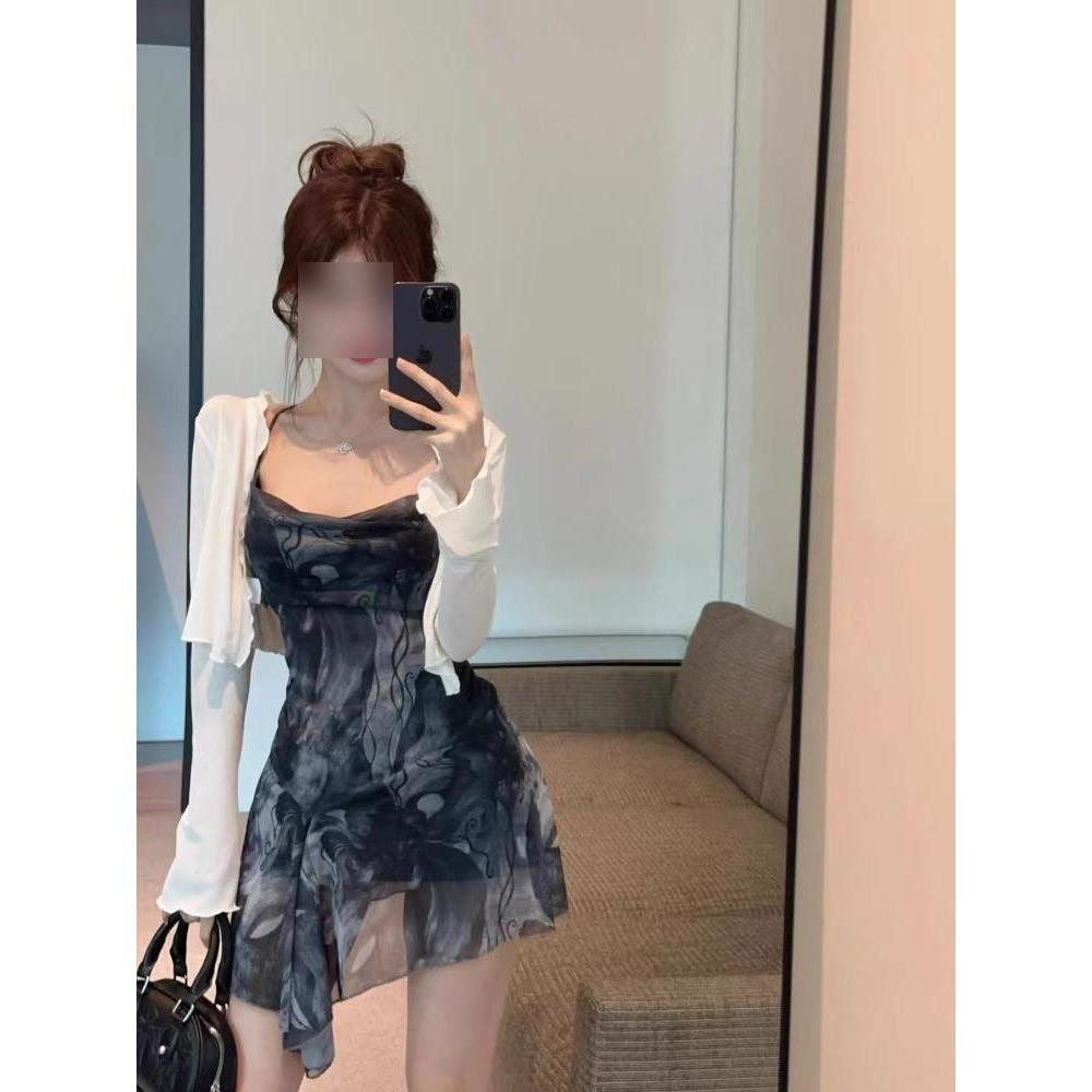 Женский летний дизайн, европейский и американский стиль spice girls, принт тай-дай, платье-майка без рукавов, перекрещенная спина, открытая спина, асимметричная короткая юбка