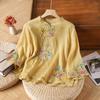 Весенняя, осенняя и летняя хлопковая и льняная рубашка с вышивкой в стиле ретро, с застежкой на планку, литературный топ, женская рубашка с рукавом три четверти