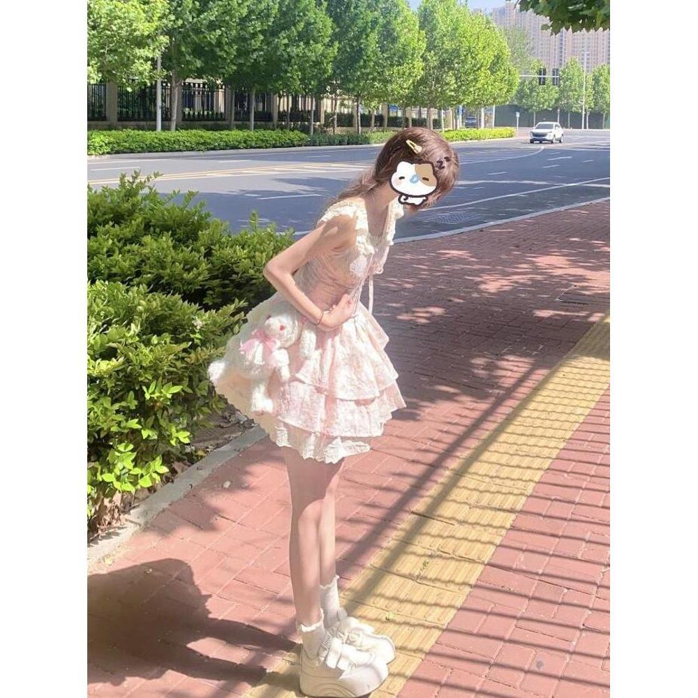 Девочки французское цветочное платье, маленькие рукава-крылышки, платье-торт принцессы, юбка-пачка на талии, детская летняя первая любовь, молочный сладкий