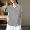 Футболка, закрывающая живот, свободная, с коротким рукавом, летняя, новая, универсальная, с V-образным вырезом, с надписью, женская