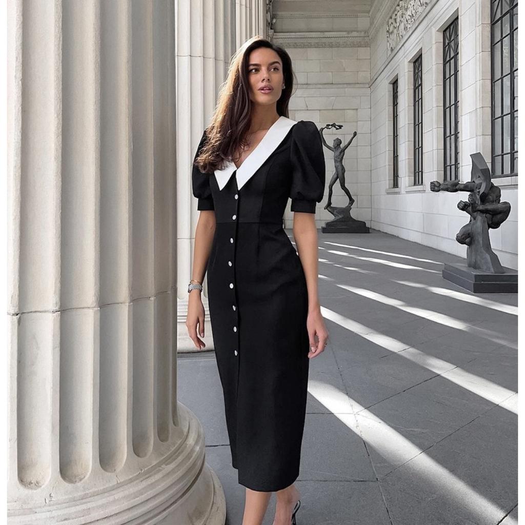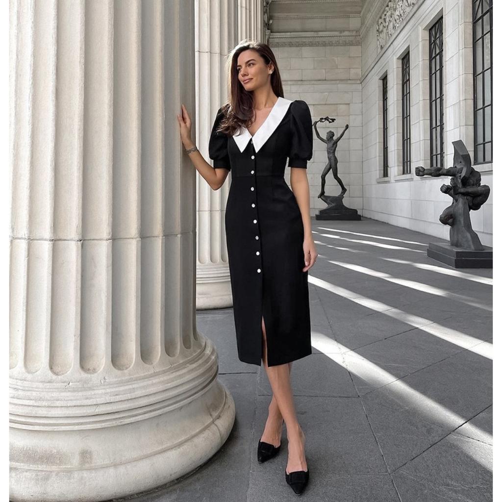LYRIA Платье с французским кукольным воротником, женское платье А-силуэта, приталенное, с рукавами-буфами, модная повседневная одежда