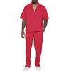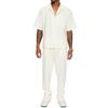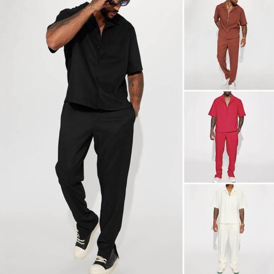 Представляем наш комплект из рубашки и брюк, изготовленный из премиальной хлопковой смеси для дышащего и комфортного ношения.. Этот мужской костюм с коротким рукавом на лето предлагает свободный и повседневный вариант, подходящий для всех типов фигуры без ущерба для стиля..