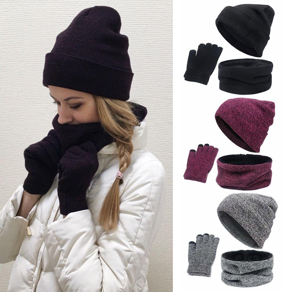 Модные вязаные перчатки с сенсорным экраном, шапка, шарф, комплект перчаток, шапка-бини, флисовый шарф, зимние теплые