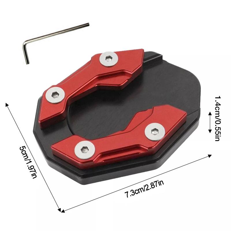 Расширенные поверхности: Значительно расширяя площадь подножки вашего мотоцикла, наши удлинительные накладки обеспечивают устойчивую и ровную парковку на любой местности, значительно повышая стабильность вашей поездки.