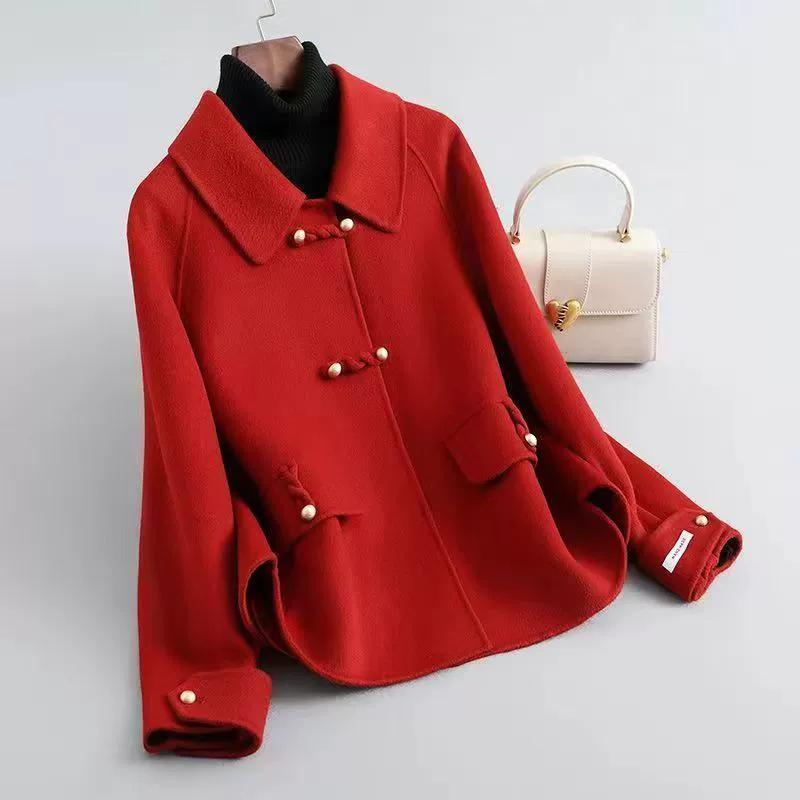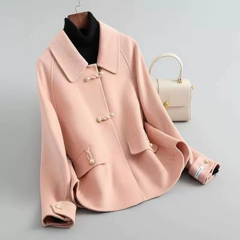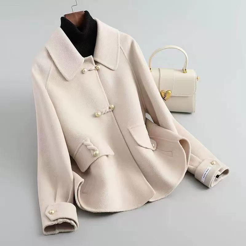 Весенне-осеннее женское шерстяное пальто, короткое, маленькое, двустороннее флисовое пальто, модный китайский стиль, свободный шерстяной топ с пряжкой