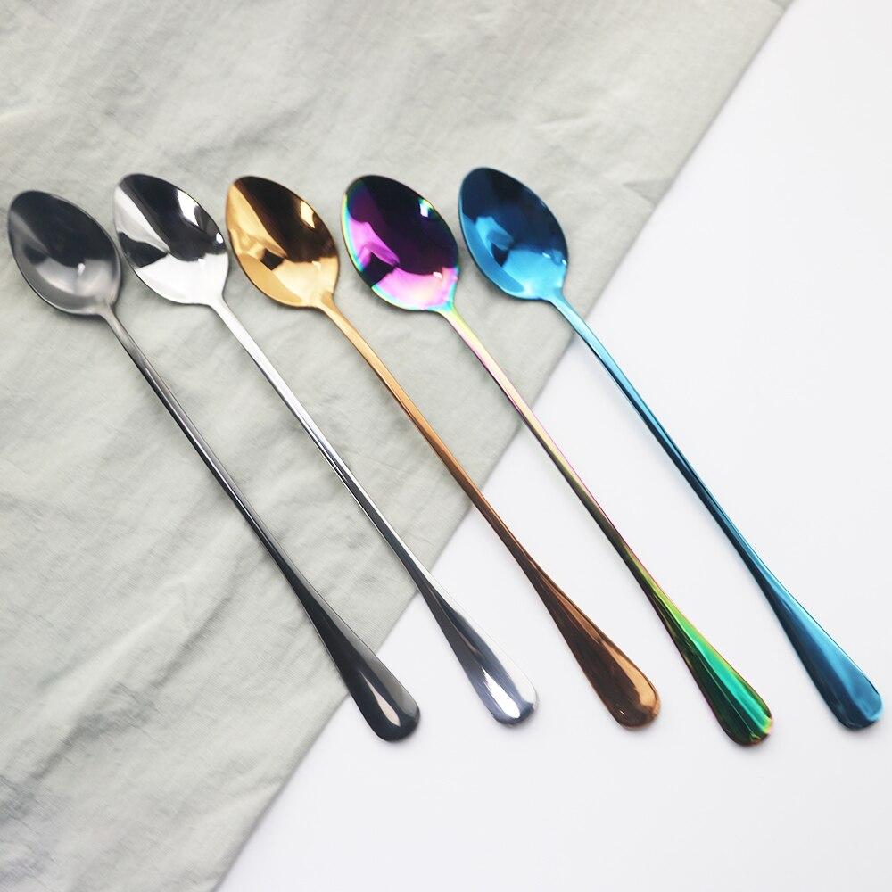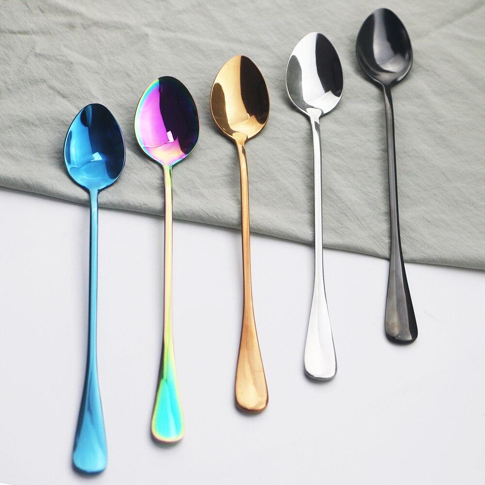 6 шт., красочный набор столовых приборов, ложка из нержавеющей стали с длинной ручкой, столовая посуда, десертная ложка для мороженого, кофе, ложка для перемешивания, столовое серебро