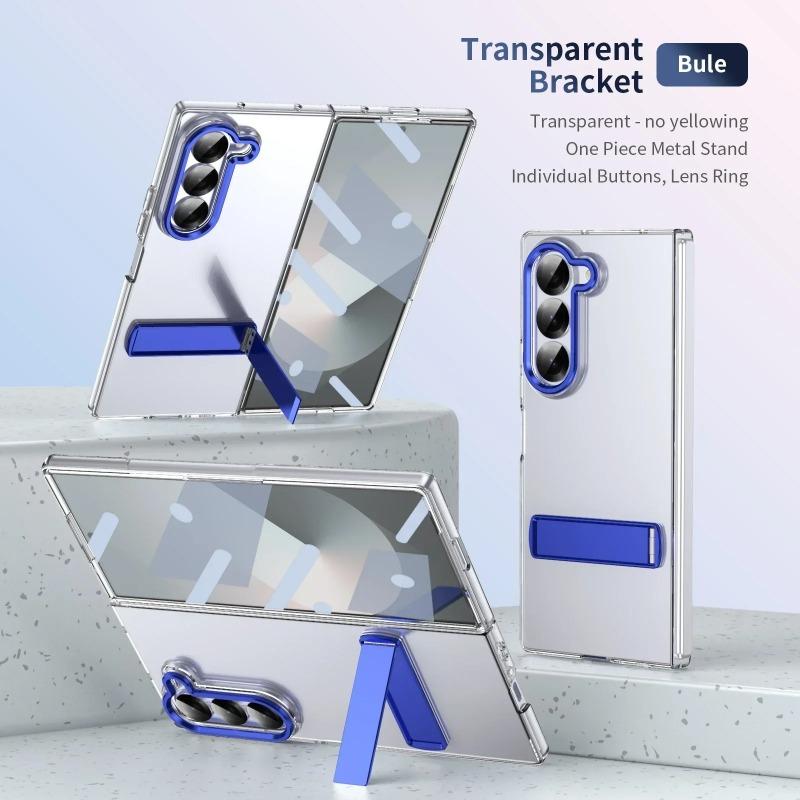 Роскошный прозрачный чехол высокой четкости для Samsung Galaxy Z Fold 7 6 5 4 с металлической подставкой-держателем, защитной пленкой для экрана и ударопрочной задней крышкой