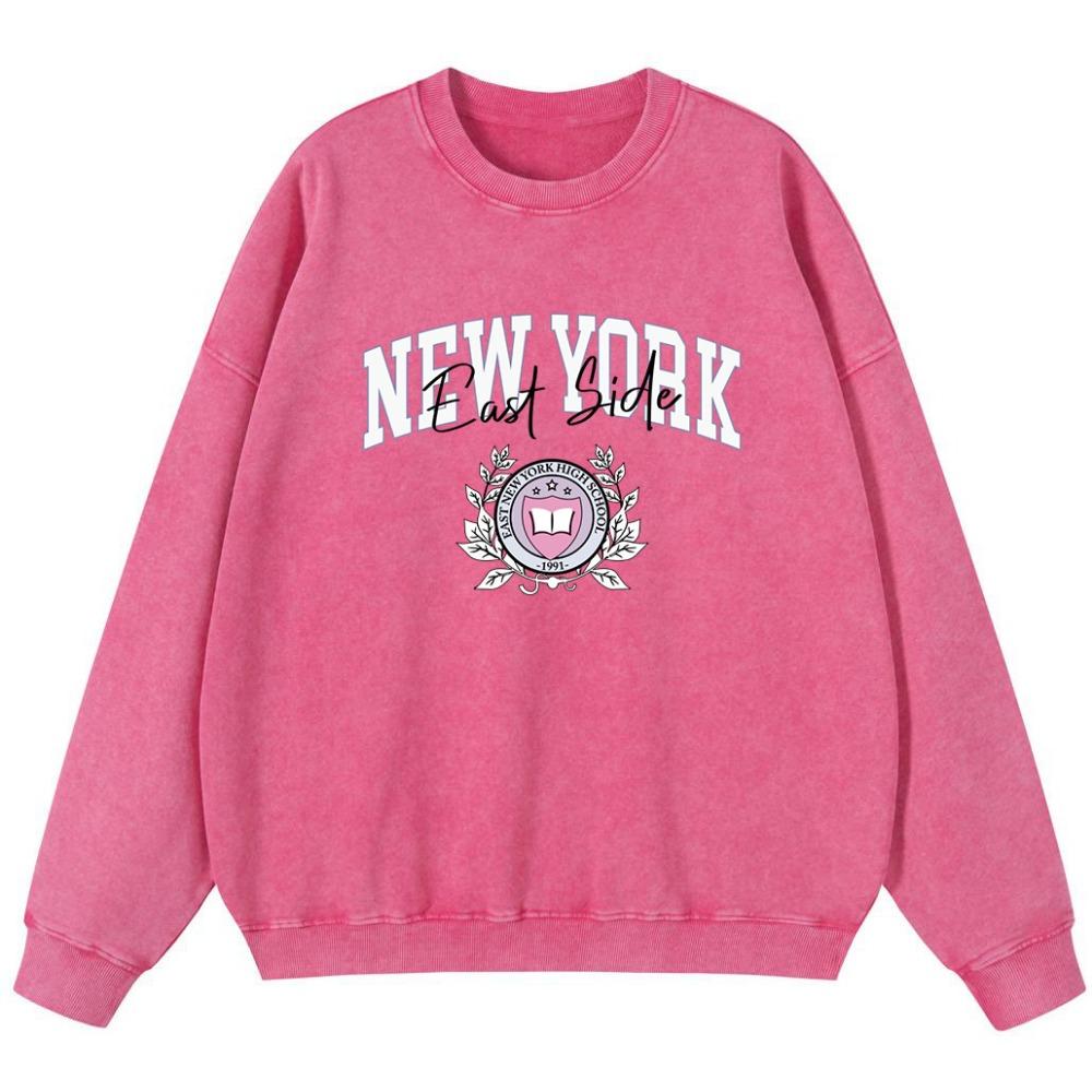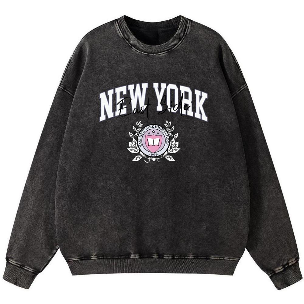 Женский свитшот из винтажного хлопка с эффектом стирки New York East Side, осенний мягкий пуловер тонкого стиля, худи уличного оверсайз кроя