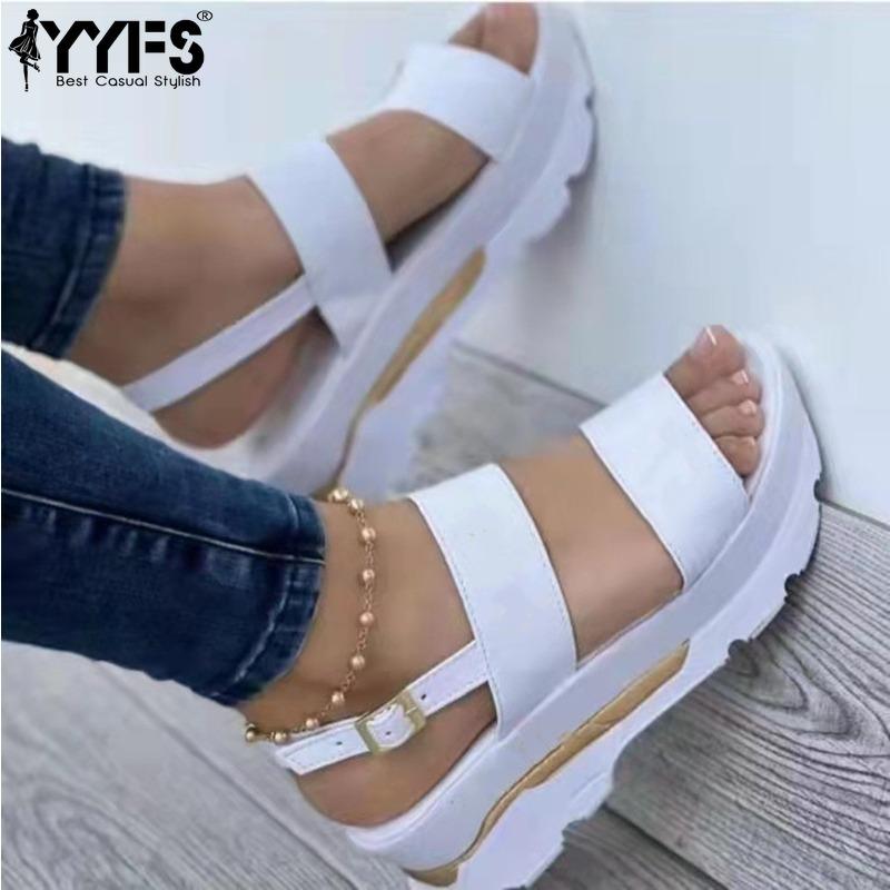 Летняя новинка женская обувь большого размера с широкой боковой частью, сандалии на танкетке с толстой подошвой в милом стиле