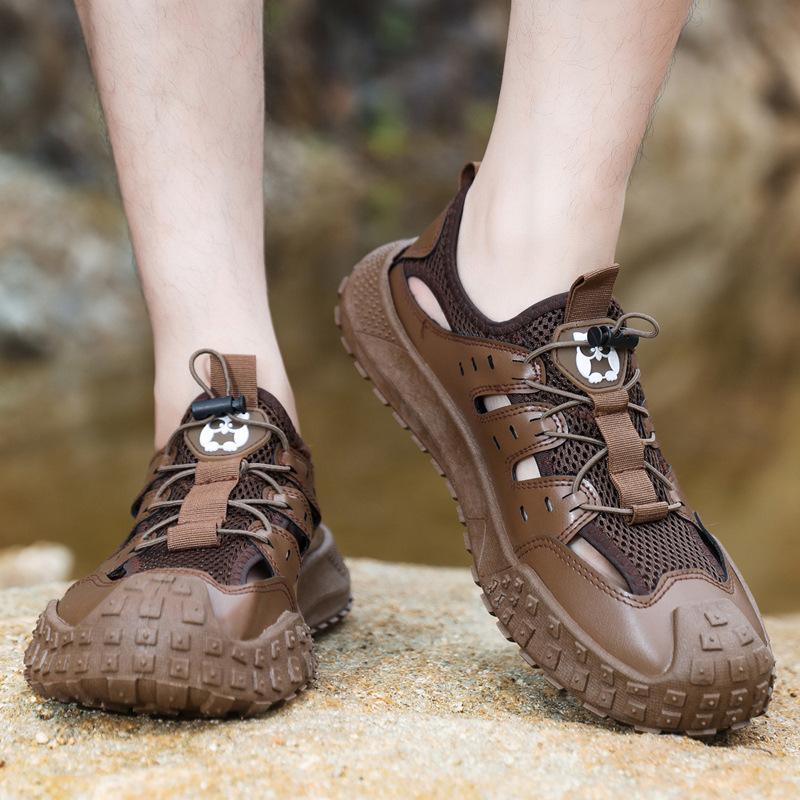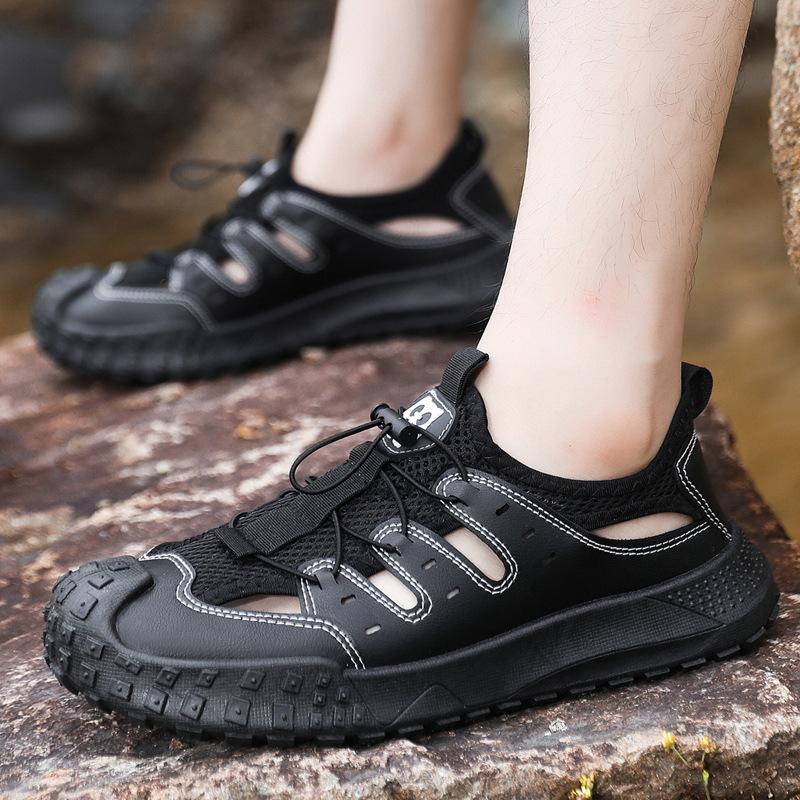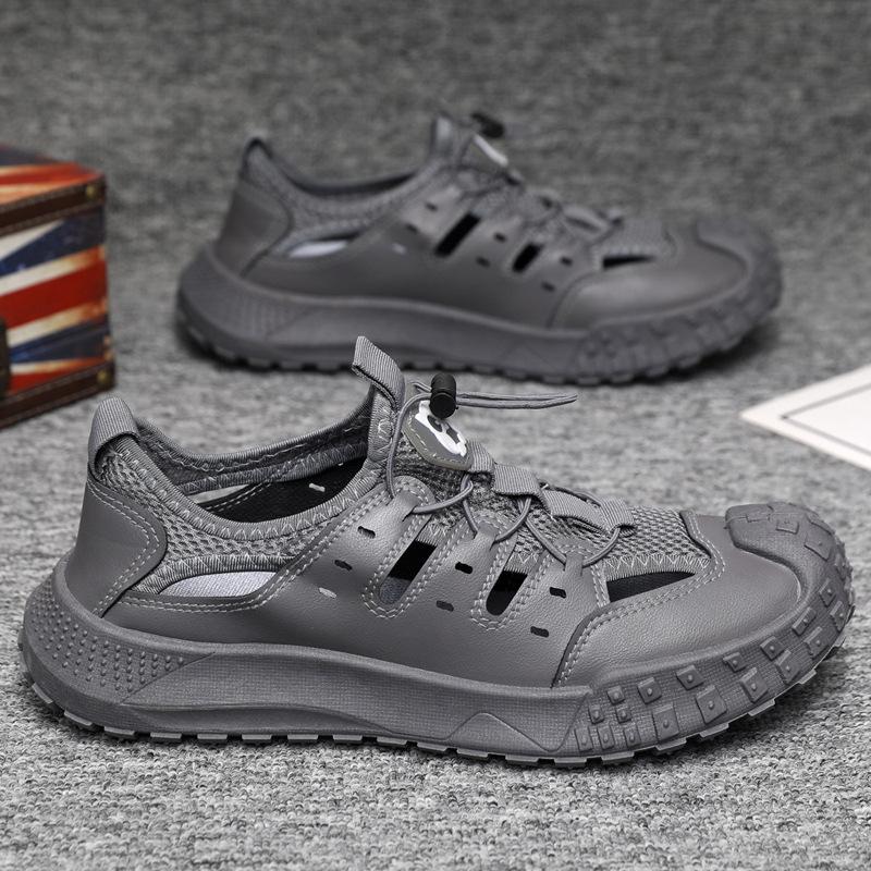 Новая мужская обувь, полая кожа, обувь с отверстиями, нескользящая и износостойкая, летние уличные повседневные сандалии