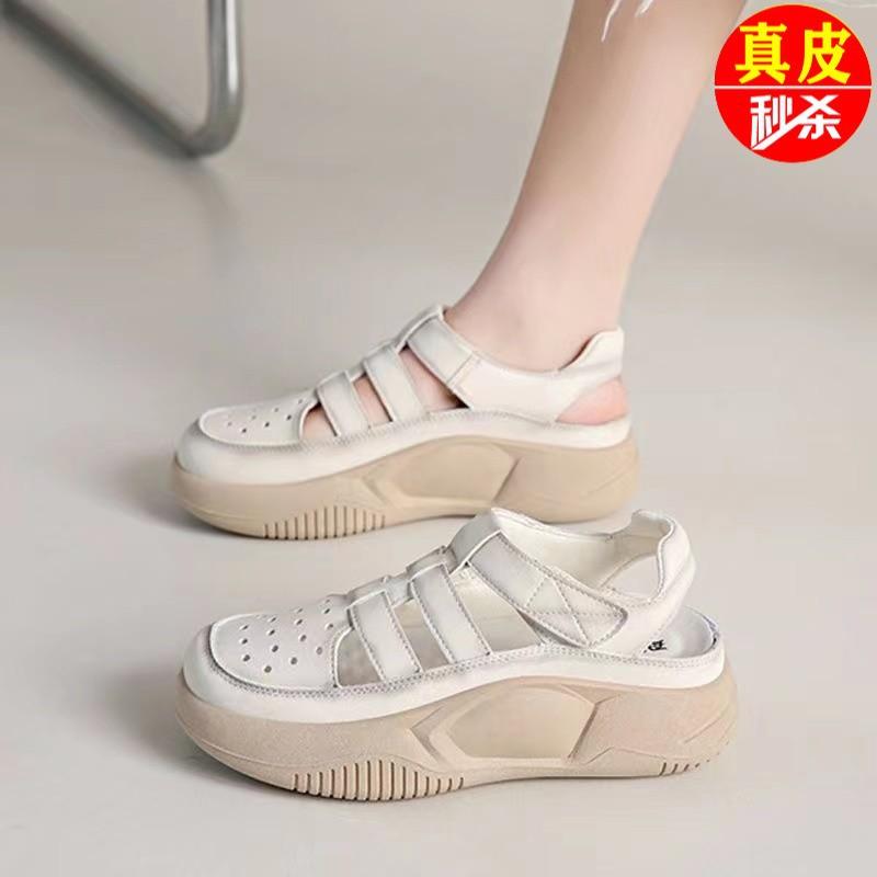 Кожаные сандалии с перфорацией, летние новые, на толстой подошве, с мягкой подошвой, дышащие, повседневные туфли с отверстиями — купить товар онлайн с бесплатной доставкой по всему миру!