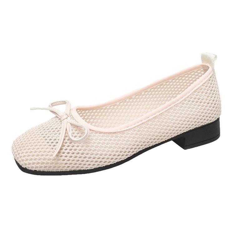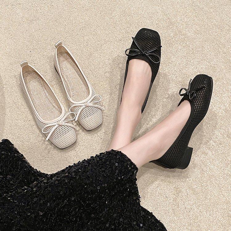 Модная дышащая сетчатая обувь на плоской подошве с квадратным носком, женские туфли на плоском каблуке с мягкой подошвой и бантом, прохладные одинарные туфли весна-лето