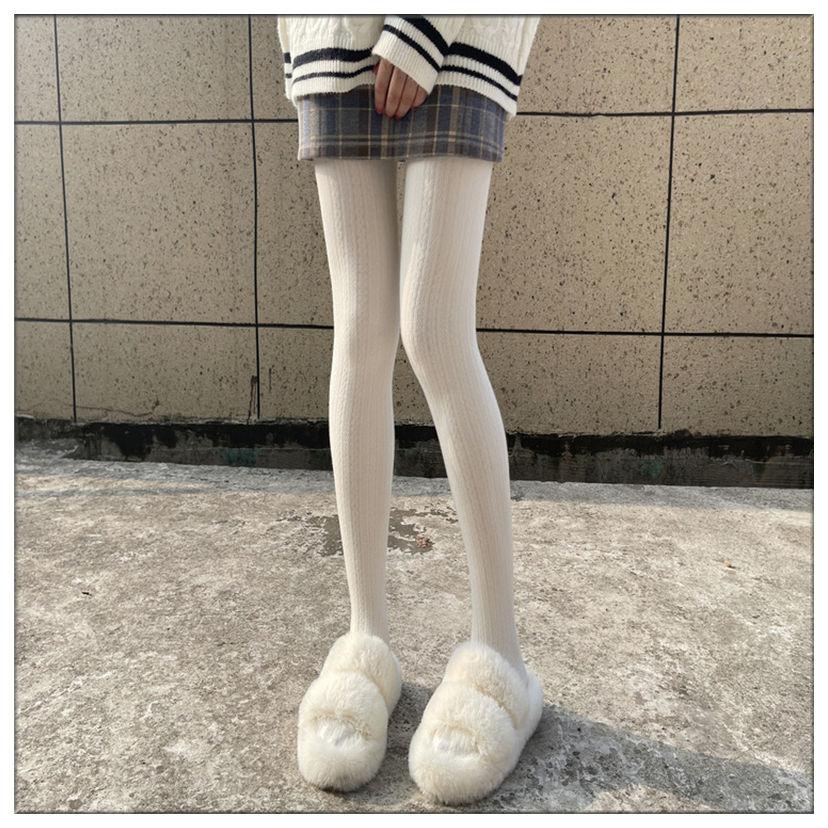 Японские колготки JK молочно-белого цвета, вязаные скрученные белые чулки, женские осенне-зимние флисовые утолщенные теплые хлопковые леггинсы