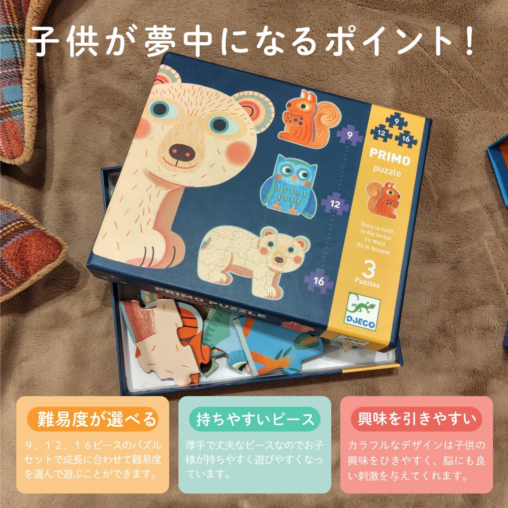 [DJECO, французский бренд развивающих игрушек] DJECO был основан в 1954 году и является одним из четырех крупнейших производителей игрушек во Франции.. Они сотрудничают с различными художниками со всего мира, чтобы создавать уникальные и сказочные игрушки.. Их проекты высоко ценятся как произведения искусства, завоевали множество европейских наград в области игрушек и продаются в художественных музеях по всему миру.. [Размер упаковки] 25.5 x 21.5 x 3.5 см [Целевой возраст] От 3 лет (36 месяцев) [Содержимое продукта] Набор пазлов (9 штук, 12 штук, 16 штук) (3 типа животных) [Дизайнер] Магали Аттиогбе