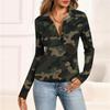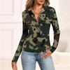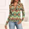 Женская мода Повседневный принт V-образный вырез Длинный рукав Застегивающаяся на пуговицы блузка