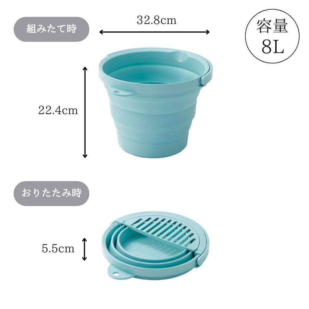 ISETO Складное ведро с мятой Ширина x Глубина x Высота Сделано в Складное Большое Ведро, 8 л, Поднос, Зеленый, 8 л, 32.8 30.0 5.5~22.4 см, Япония, Складное,