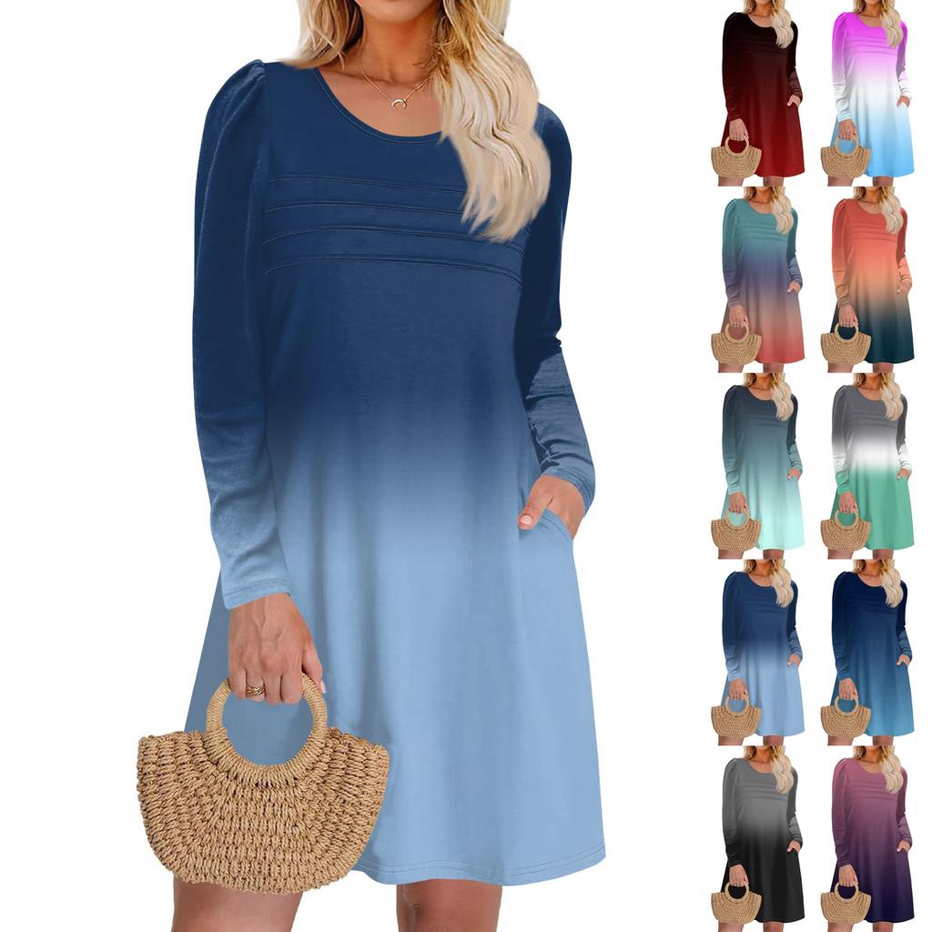 Женское платье с длинным рукавом, осеннее повседневное, футболка, свободного кроя, с плиссировкой спереди, платья с карманами — купить товар онлайн с бесплатной доставкой по всему миру!