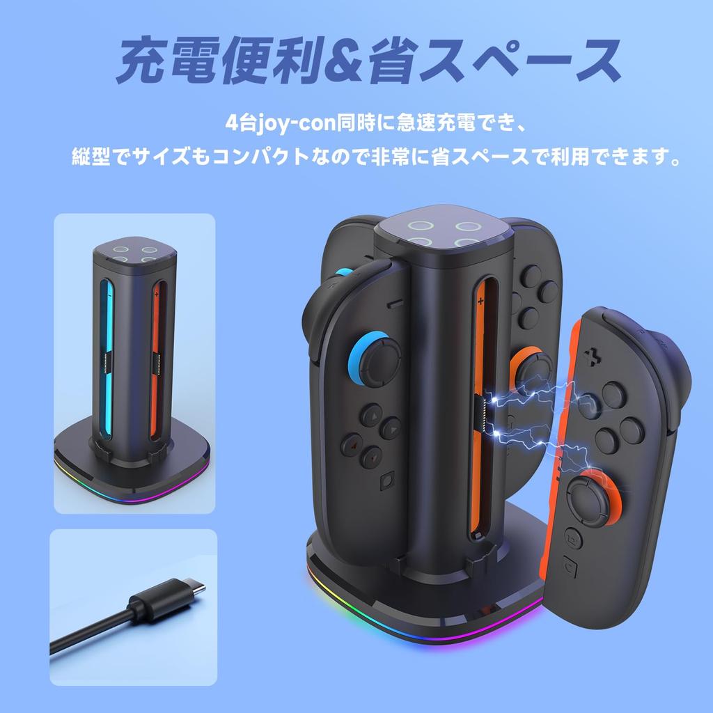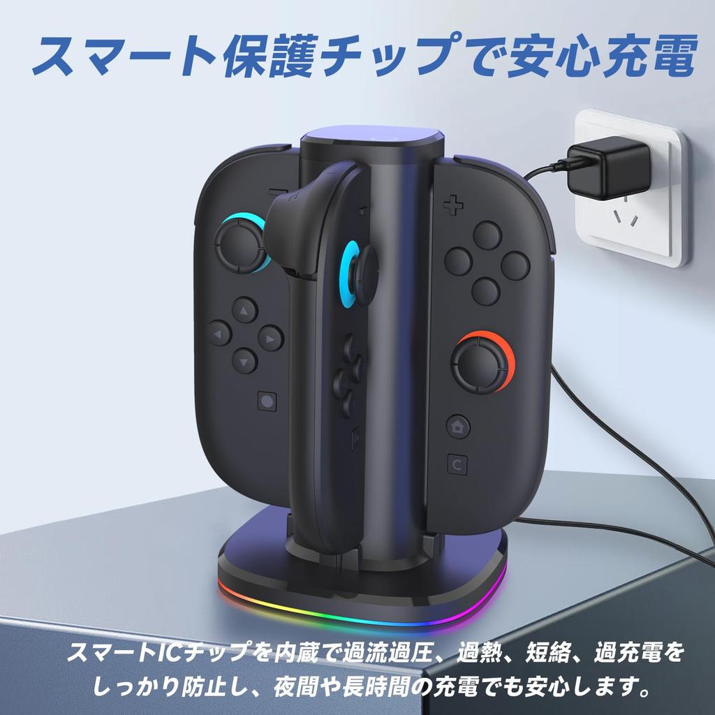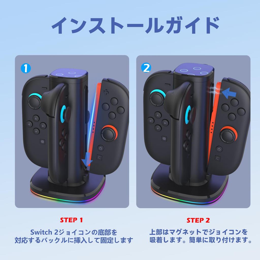 🔋【Быстрая зарядка для 4 устройств одновременно】Эта зарядная станция может заряжать два комплекта Joy-Con одновременно через USB-C соединение за 2,5 часа. После обновления он на 40% быстрее предыдущего зарядного устройства Joy-Con, что экономит вам много времени. В свободное время вы также можете наслаждаться играми с друзьями и семьей. Внешняя зарядка — незаменимая вещь, если вы играете долго! Switch 2 периферийных аксессуара, гордость Японии!