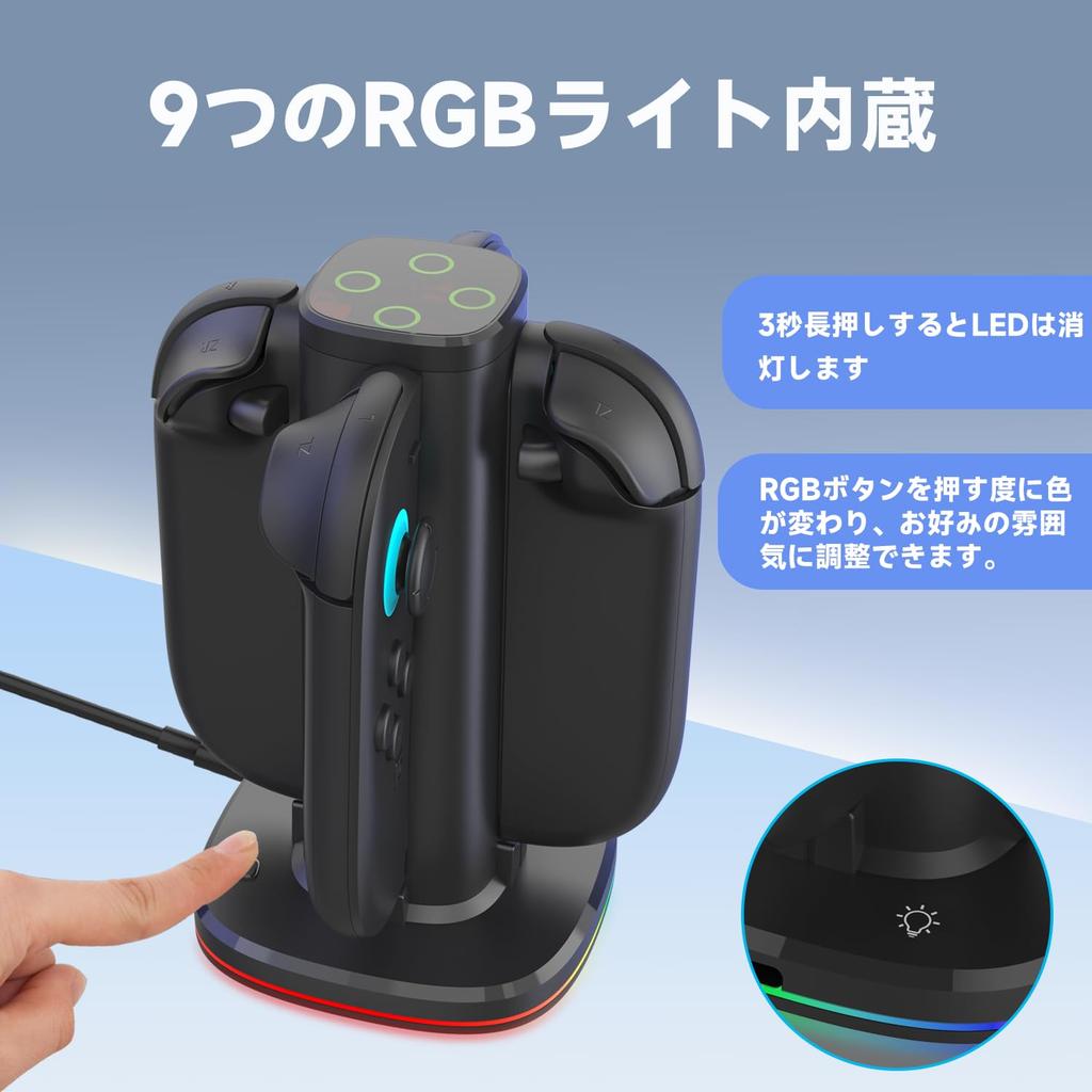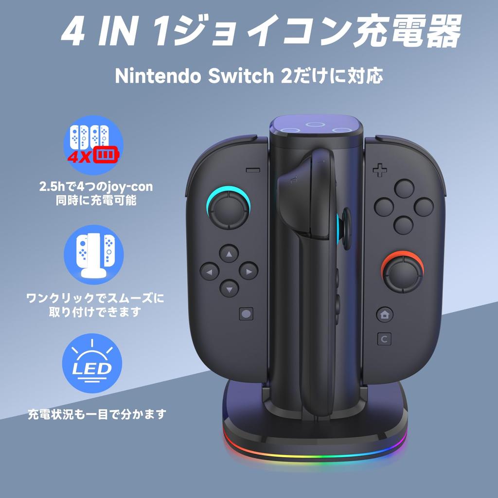 Зарядное устройство 4 в 1 для Switch 2 Joy-Con, совместимое с Nintendo Switch 2, быстрая зарядка, магнитная зарядка до 4 Joy-Con одновременно, легко крепится с помощью магнитов, оснащено чипом защиты от перезарядки, 9 встроенных RGB-подсветки, кабель Type-C в комплекте, аксессуары для Switch 2