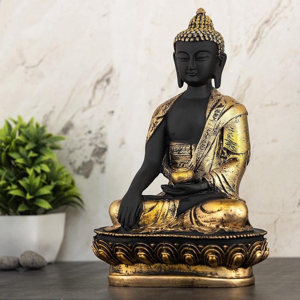 Статуя Будды, экспонат, идол, предметы домашнего декора для гостиной и подарки (Золотой 3 Черный)
