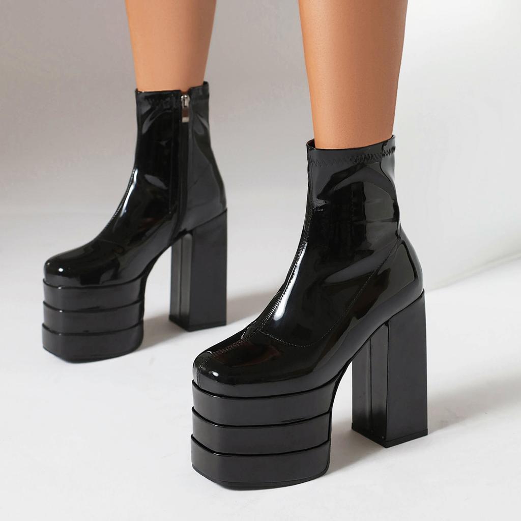 Большого размера квадратный носок трехслойная ультравысокая платформа вырезы толстые каблуки популярная мода короткие ботинки молния женские ботинки