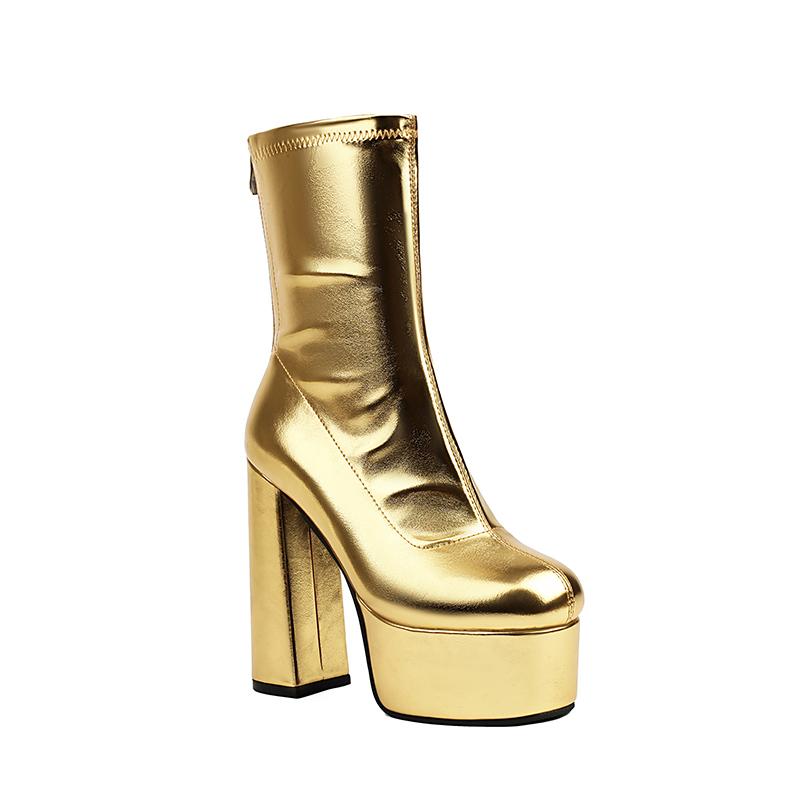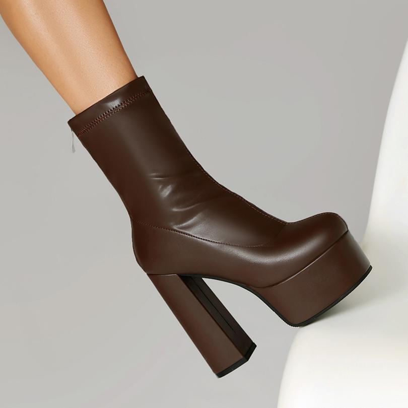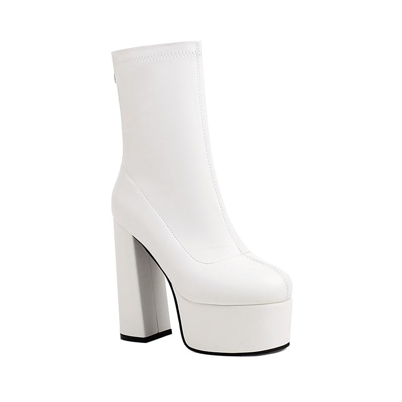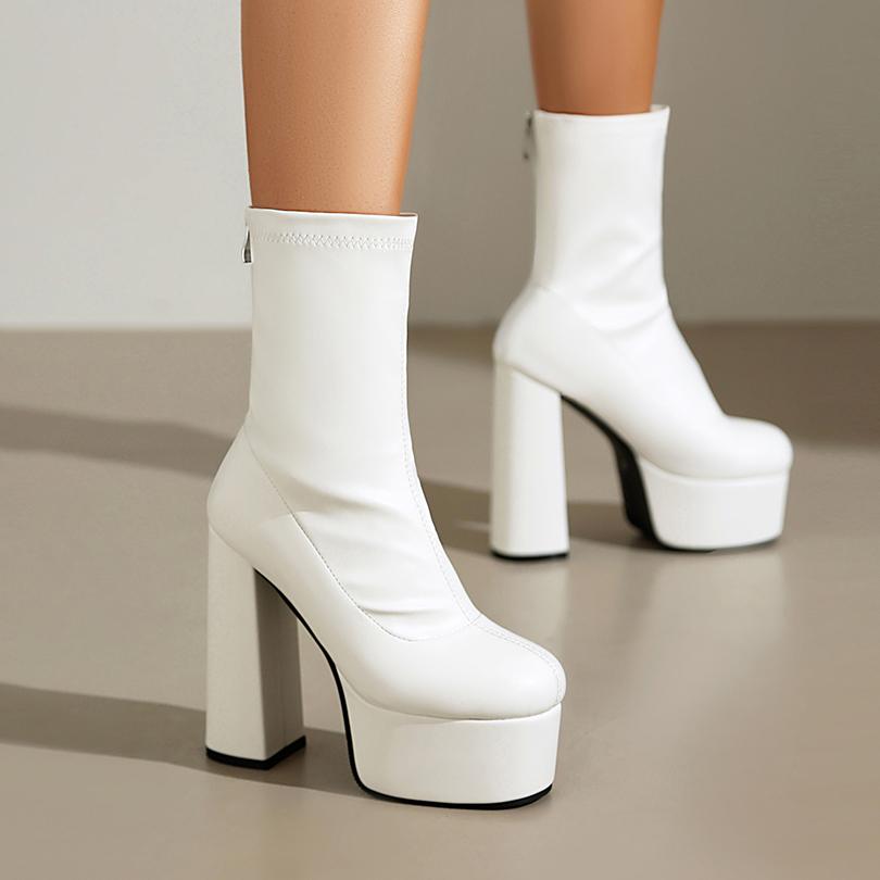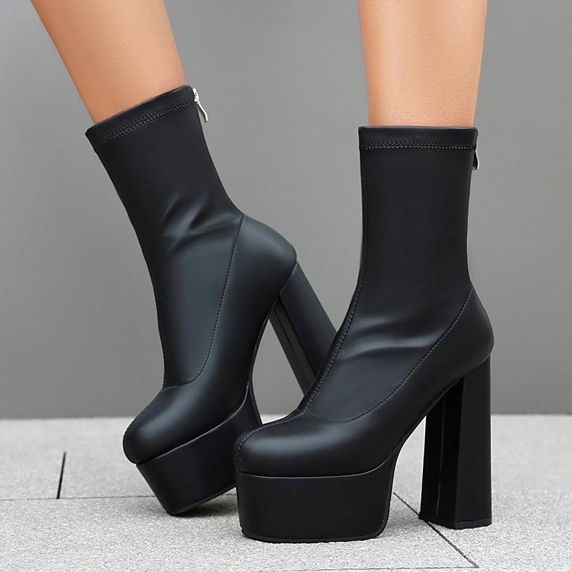 Большой размер Круглый носок Супервысокий толстый каблук Высокая платформа Застежка-молния сзади Модные женские ботинки Дышащая подкладка Эластичные ботинки
