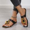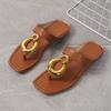 Женские тапочки больших размеров 36-43, модные сандалии с металлической пряжкой и квадратным носком, летние новые универсальные повседневные туфли на плоской подошве с открытым носком