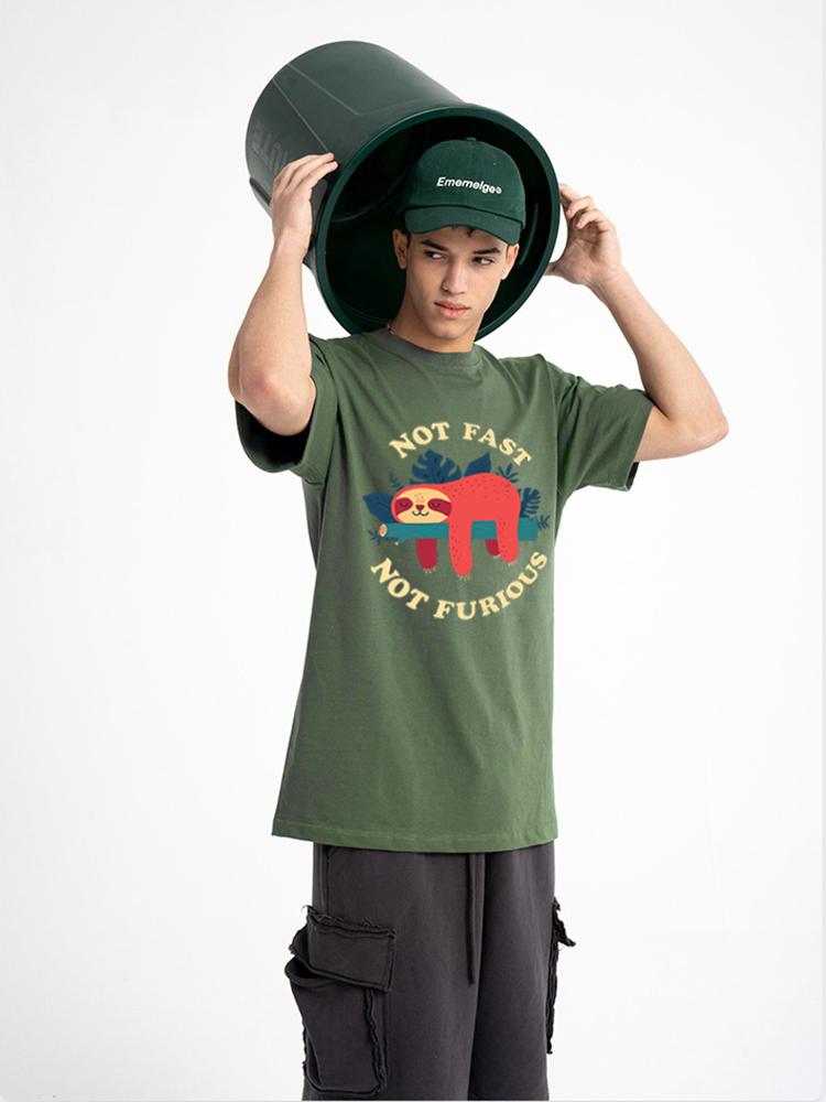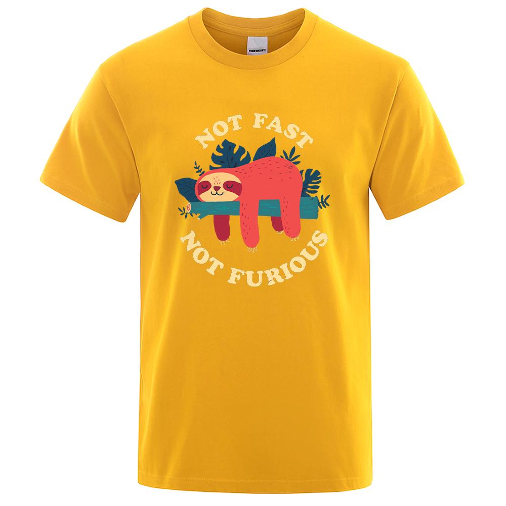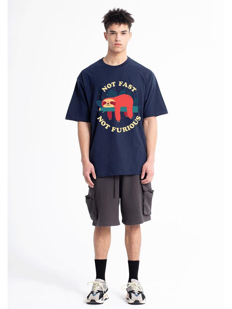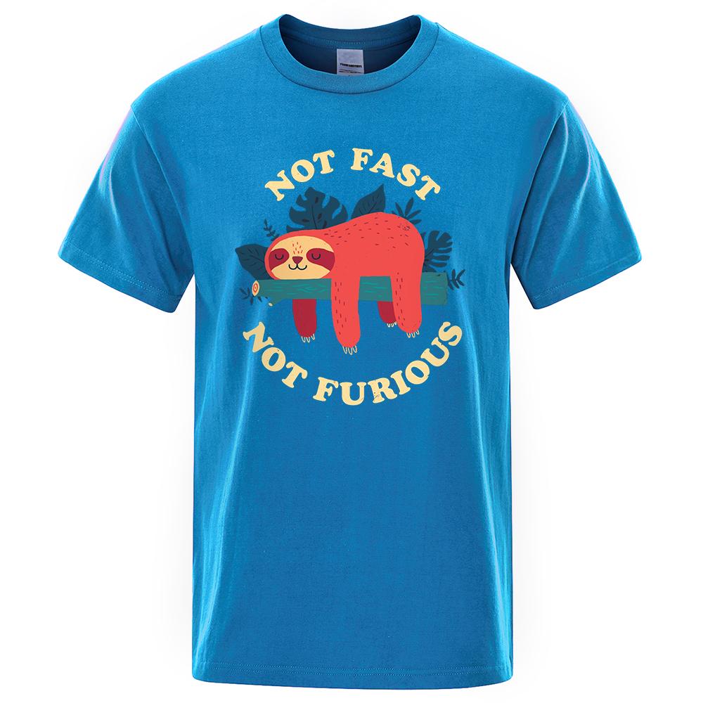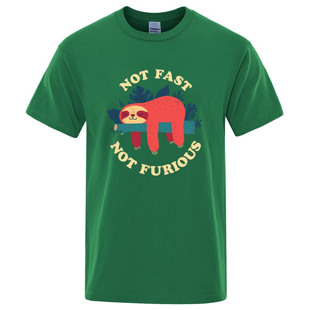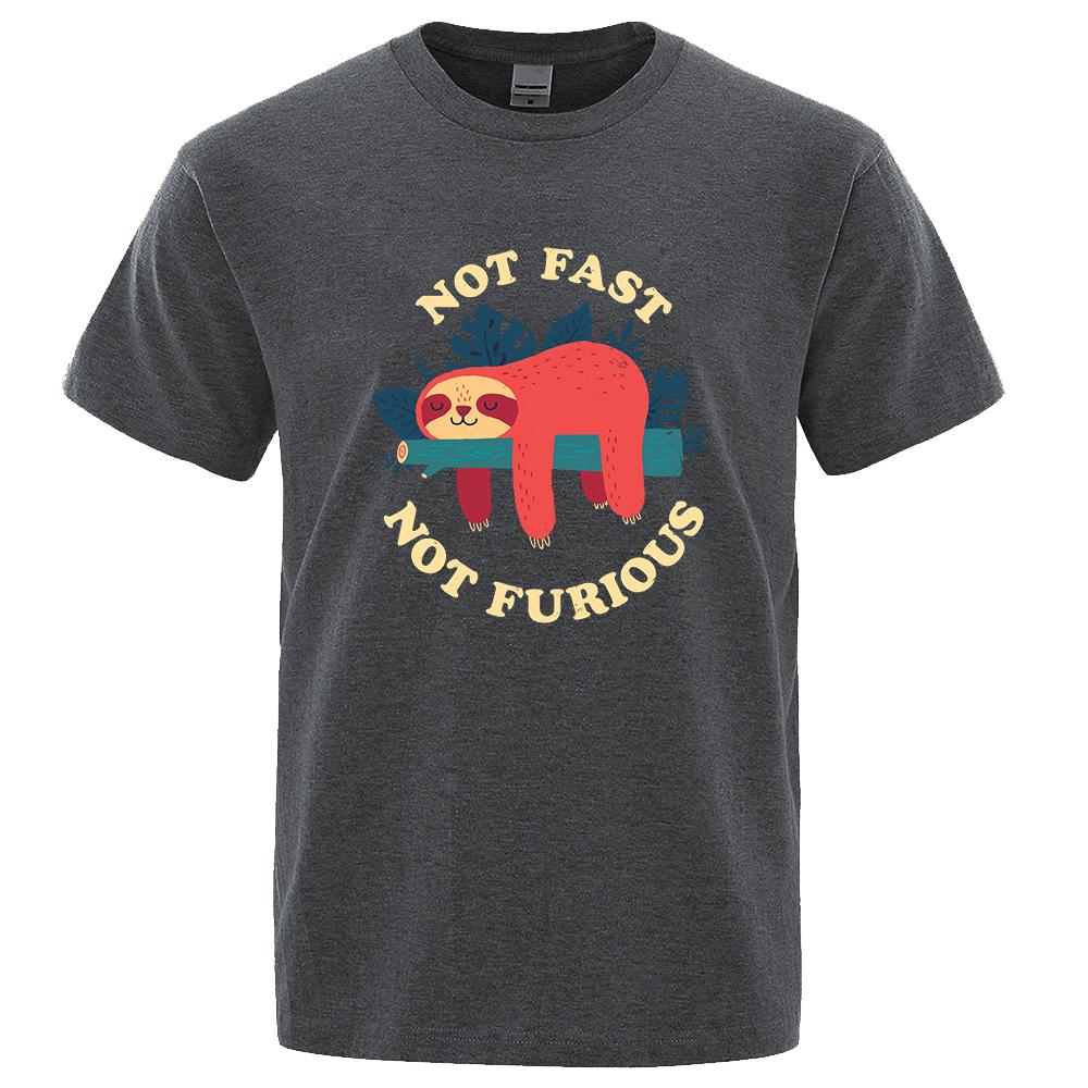 Не быстрый, не яростный Мультяшный принт Мужские футболки Дышащие брендовые топы Уличная мода Футболка Мужские повседневные летние футболки