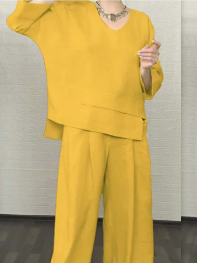 Женский топ с V-образным вырезом и рукавом 3/4, с широкими брюками, повседневный свободный костюм, детали с карманами